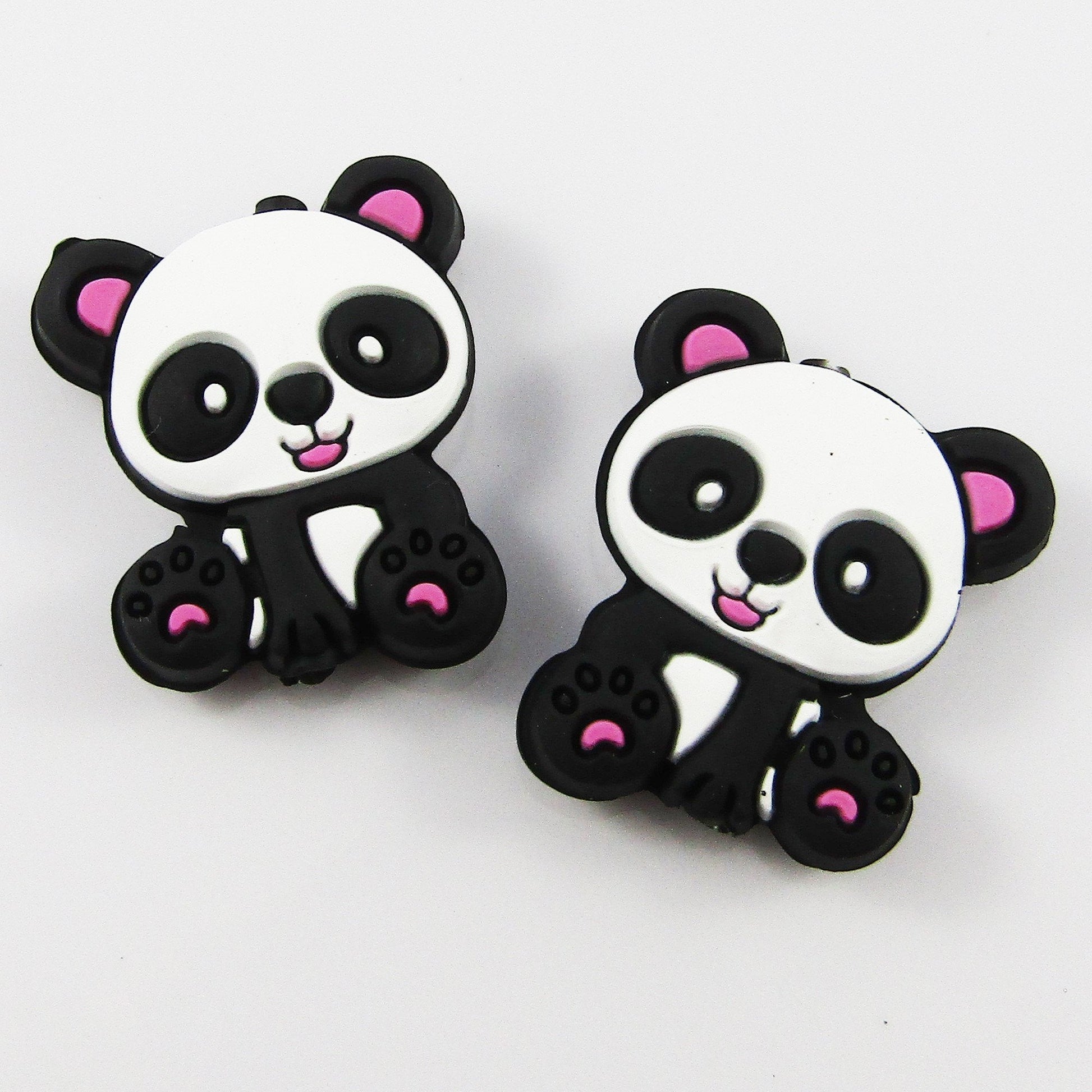 2pcs Panda Silicone Focal Bead Cute Animal 28x24x7.5mm Hole 2.5mm Pen Keychains