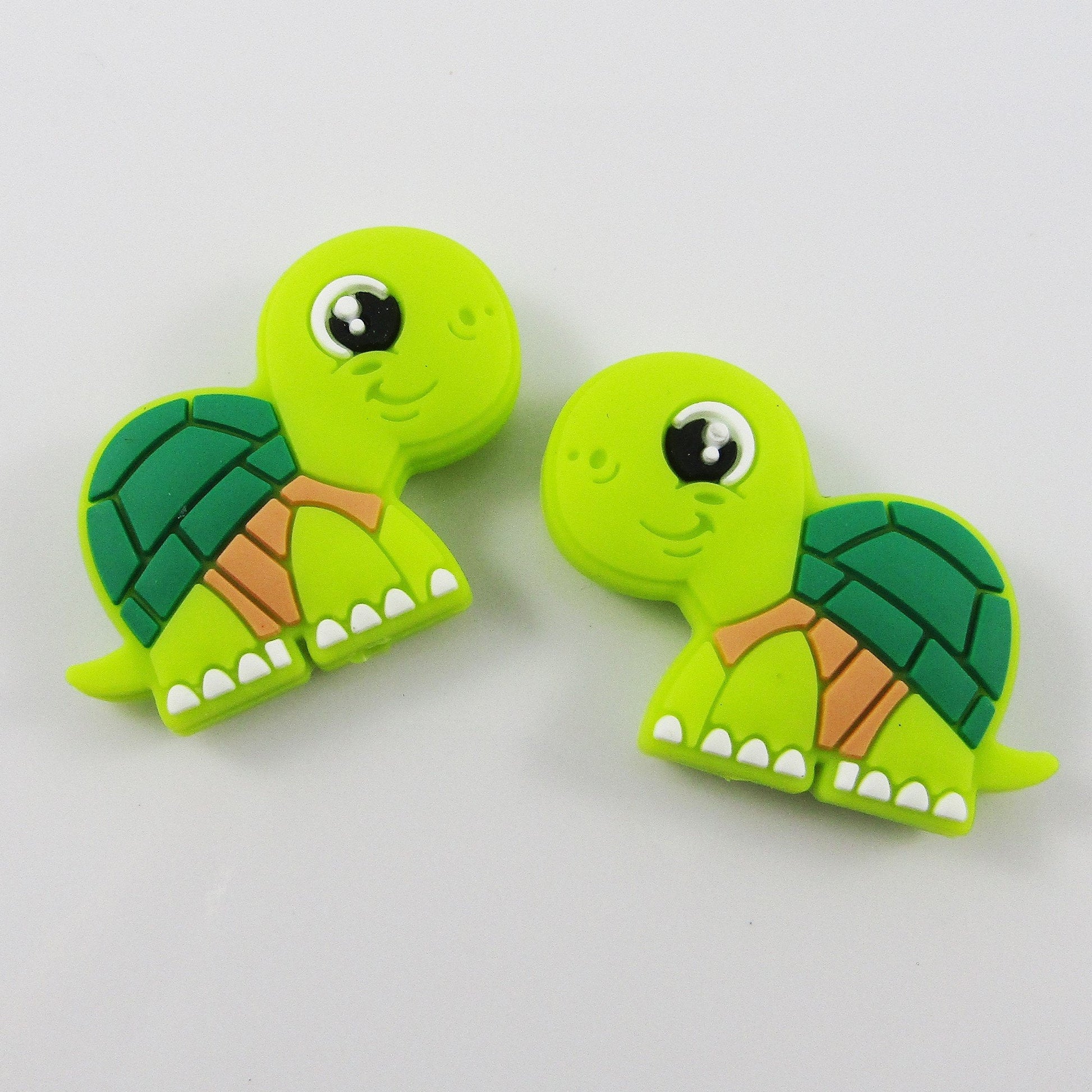 2pcs Turtle Silicone Focal Bead Green Yellow 24x33x7.5mm Hole 3mm Pen Keychains