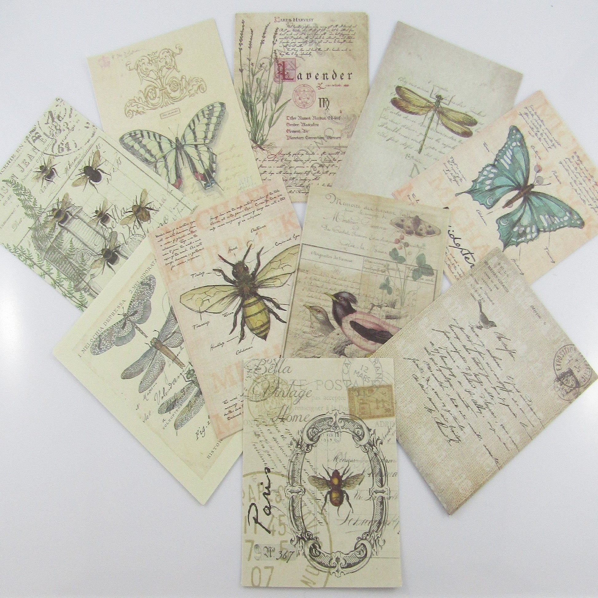 30pc Butterfly Bee Dragonfly Retro Scrapbook Papers Journal Ephemera 91x66mm