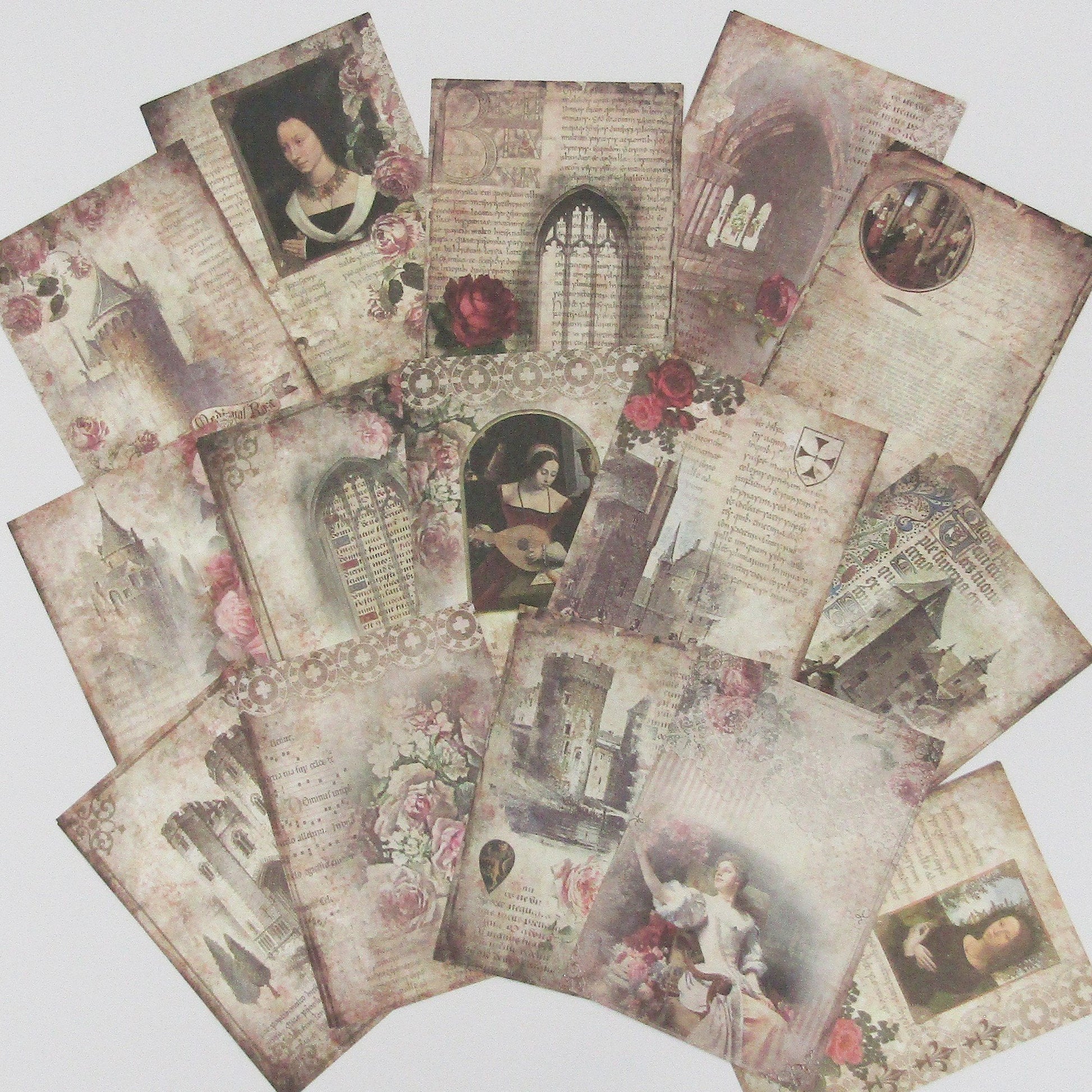 30pc Medieval Castles Retro Scrapbook Papers Cards Journal Ephemera 140x100mm