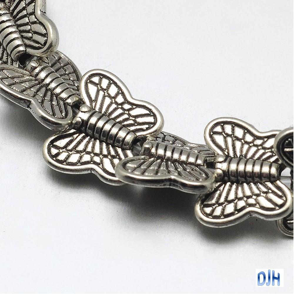 30pcs Antique Silver Butterfly Spacer Beads Tibetan Style 9x10.5x3mm Hole 1.2mm