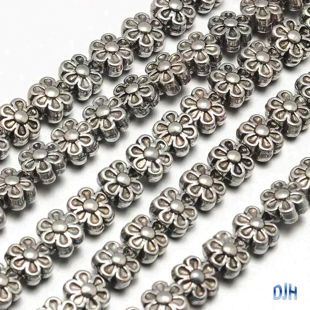 35pcs Antique Silver 6 Petal Flower Spacer Beads Tibetan Style 6.5x4.5mm Hole 1m