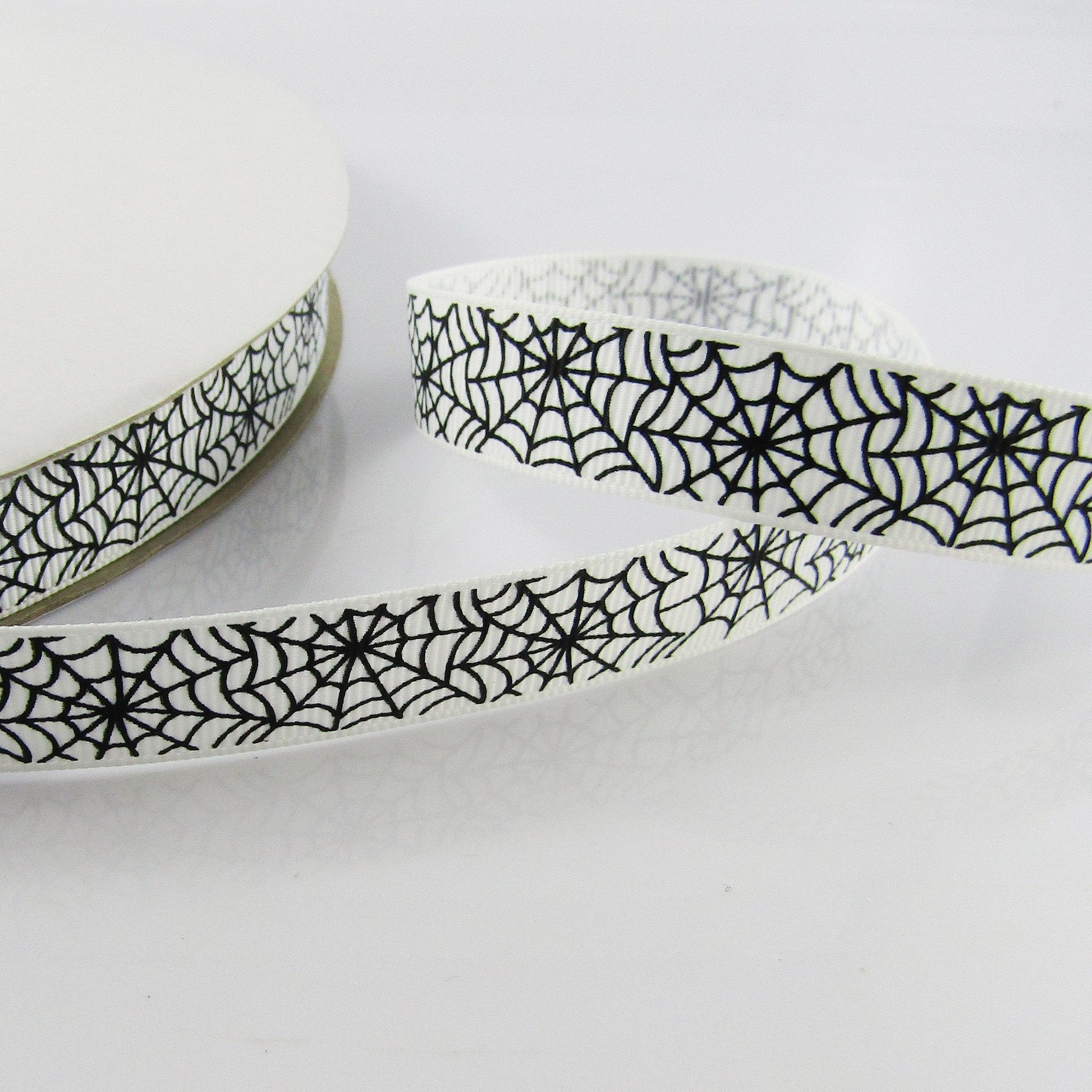 3metres Halloween Print Spider Web Grosgrain Ribbon 16mm White