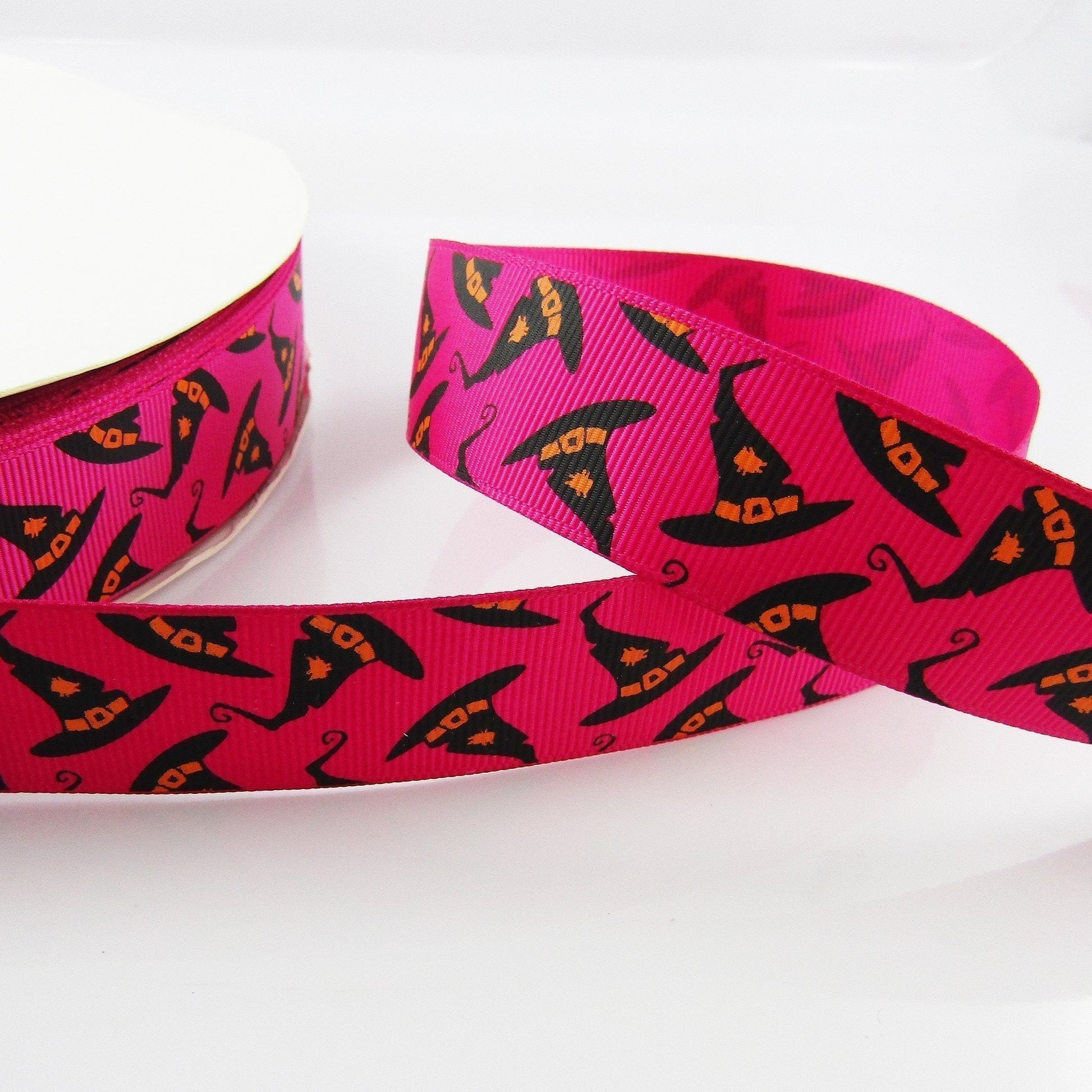 3metres Halloween Print Witch Hat Grosgrain Ribbon 25mm White