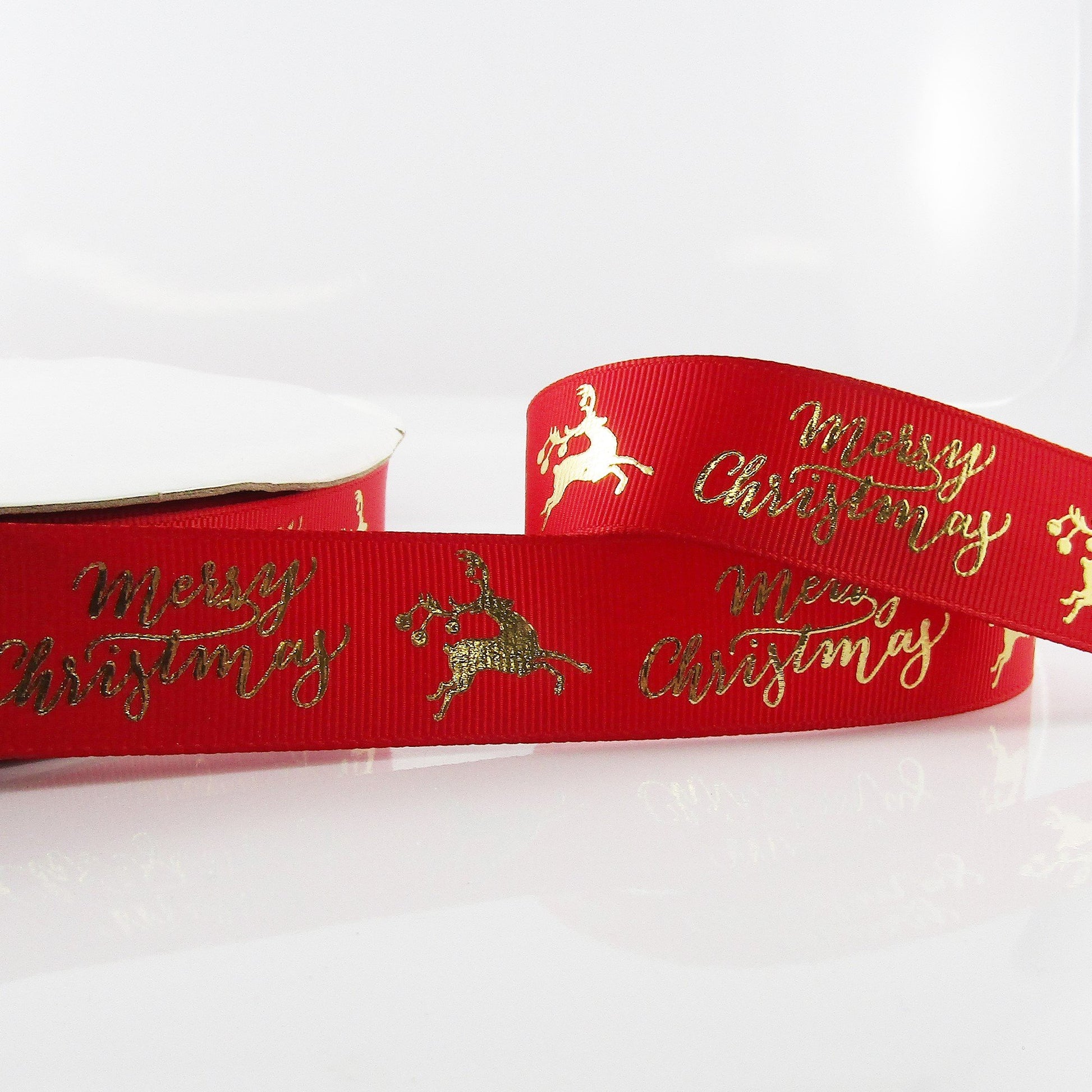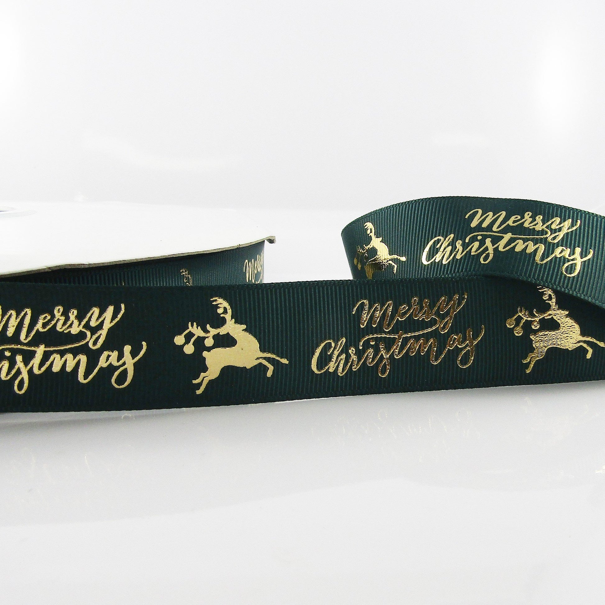 3metres Metallic Reindeer Merry Christmas Grosgrain Ribbon 25mm Green or Red