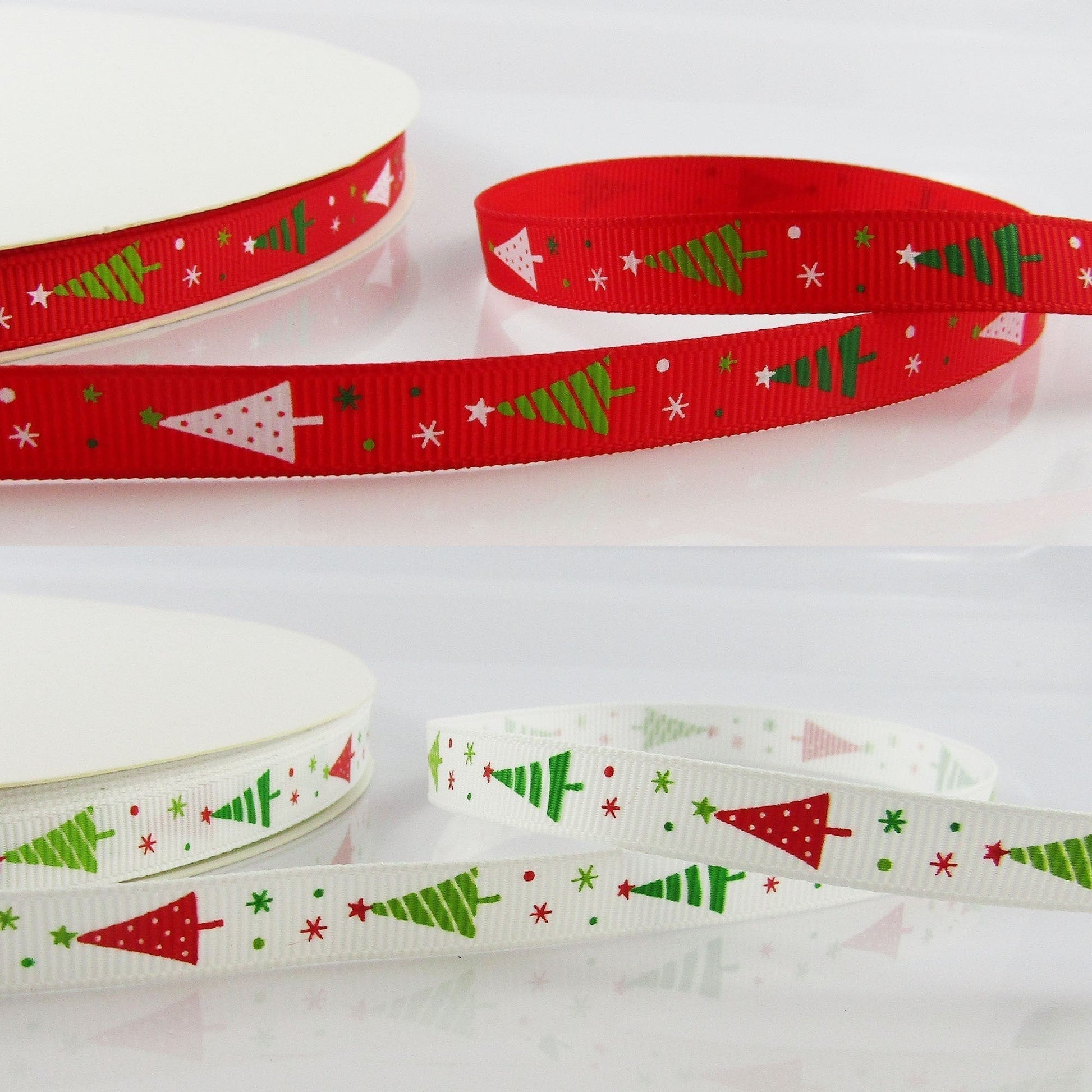 3metres Printed Christmas Trees Grosgrain Ribbon 9mm Red or White