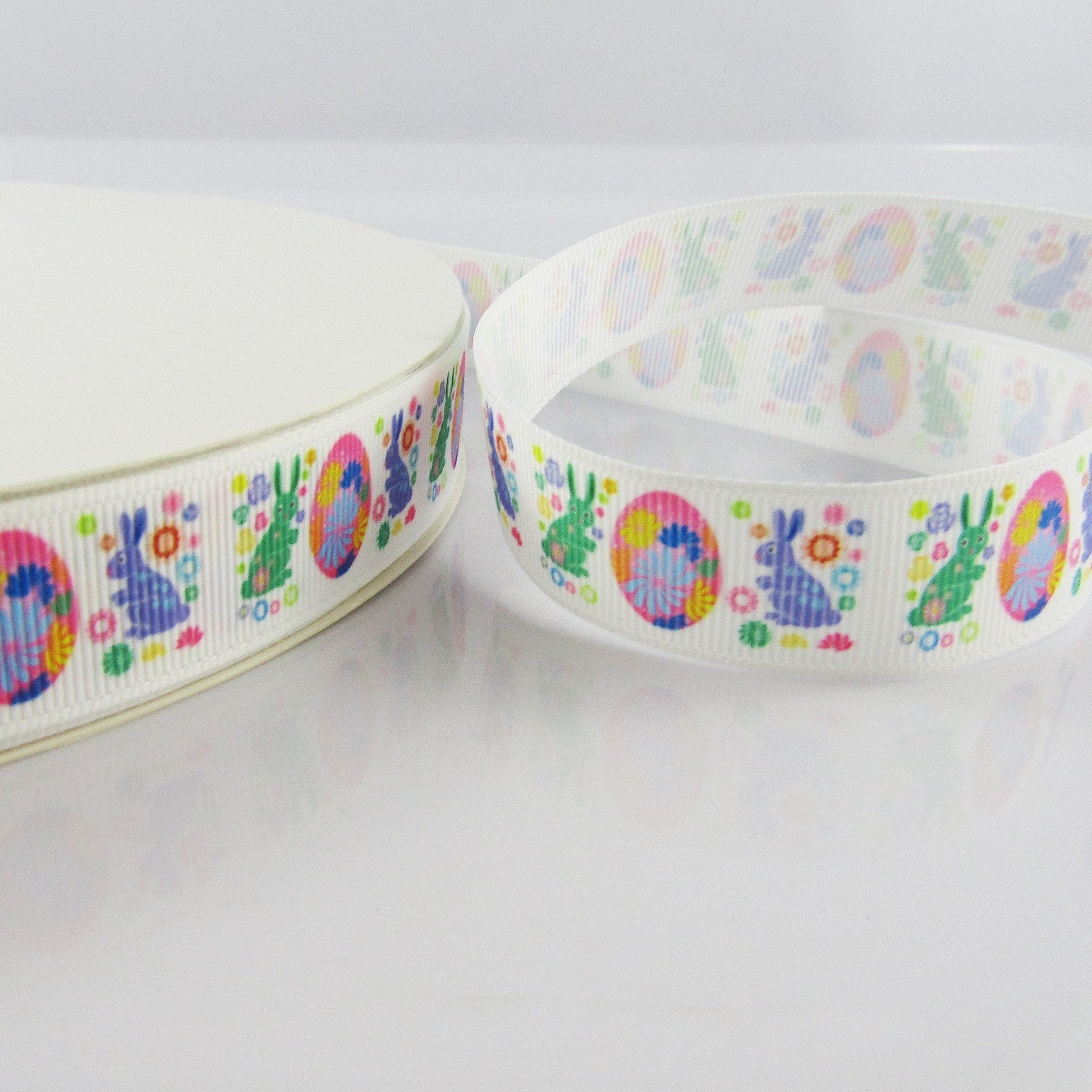 3metres Printed Flowers Easter Bunny Grosgrain Ribbon 20mm