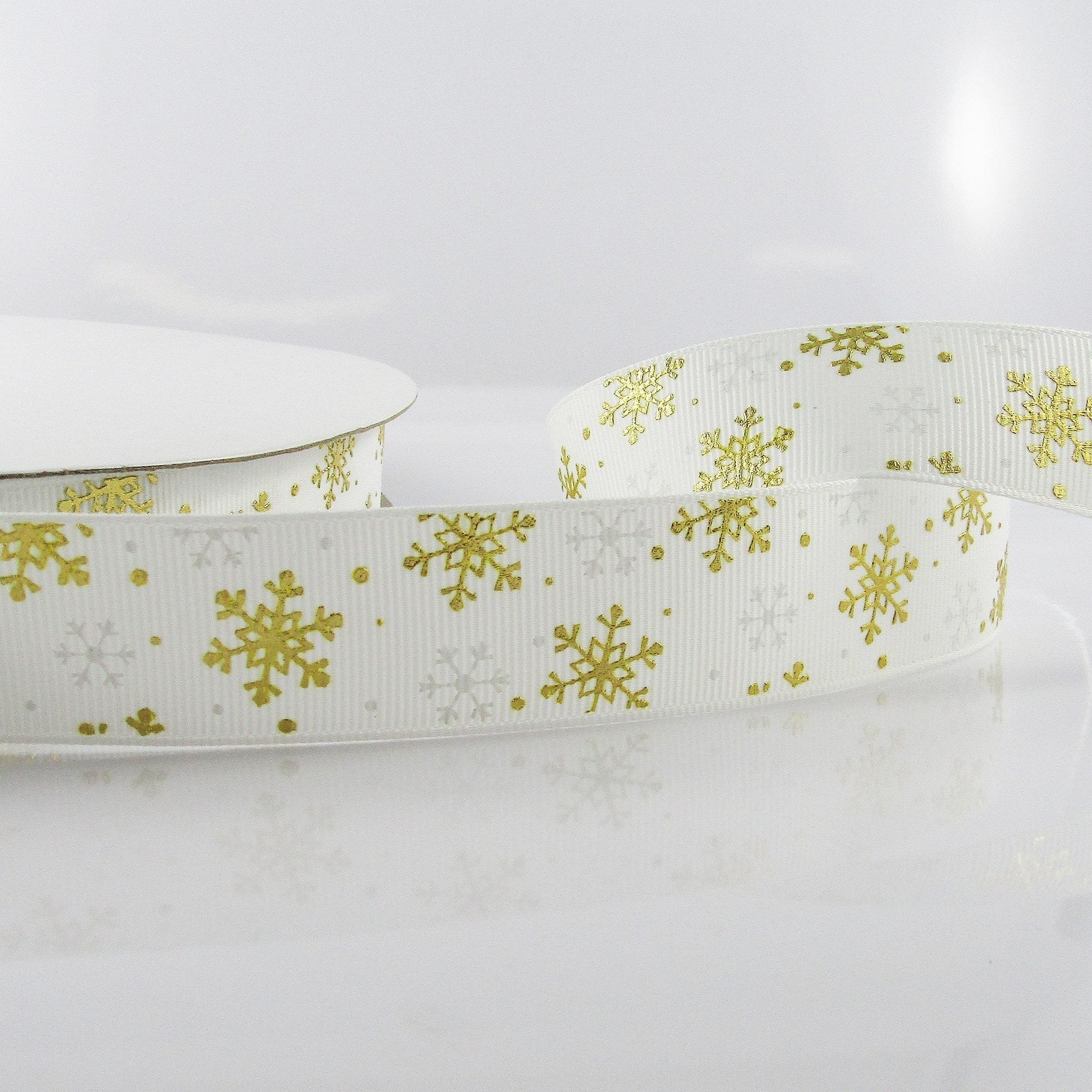 3metres Printed Metallic Gold Snowflake Christmas Grosgrain Ribbon 25mm