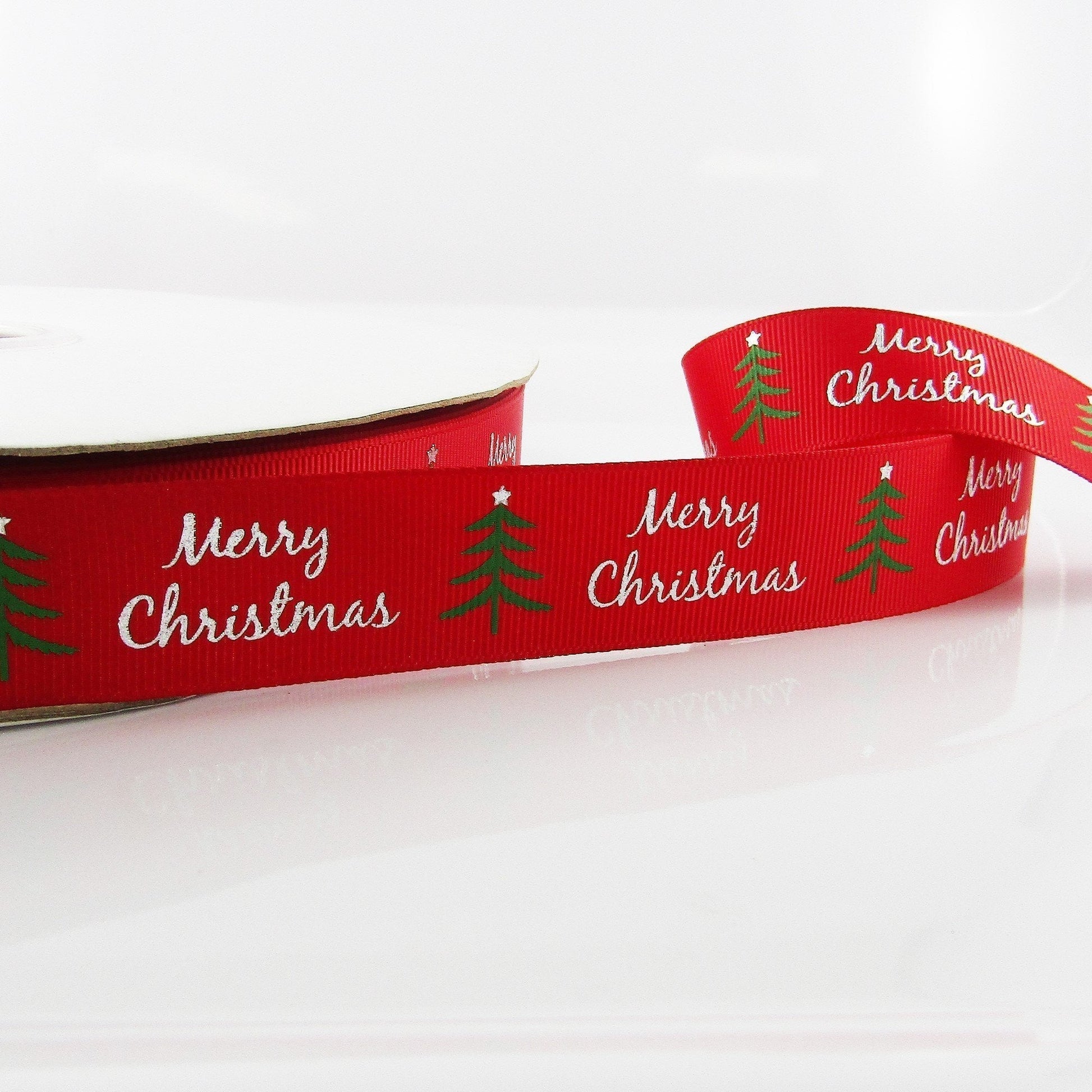 3metres Printed Metallic Merry Christmas Tree Grosgrain Ribbon 25mm