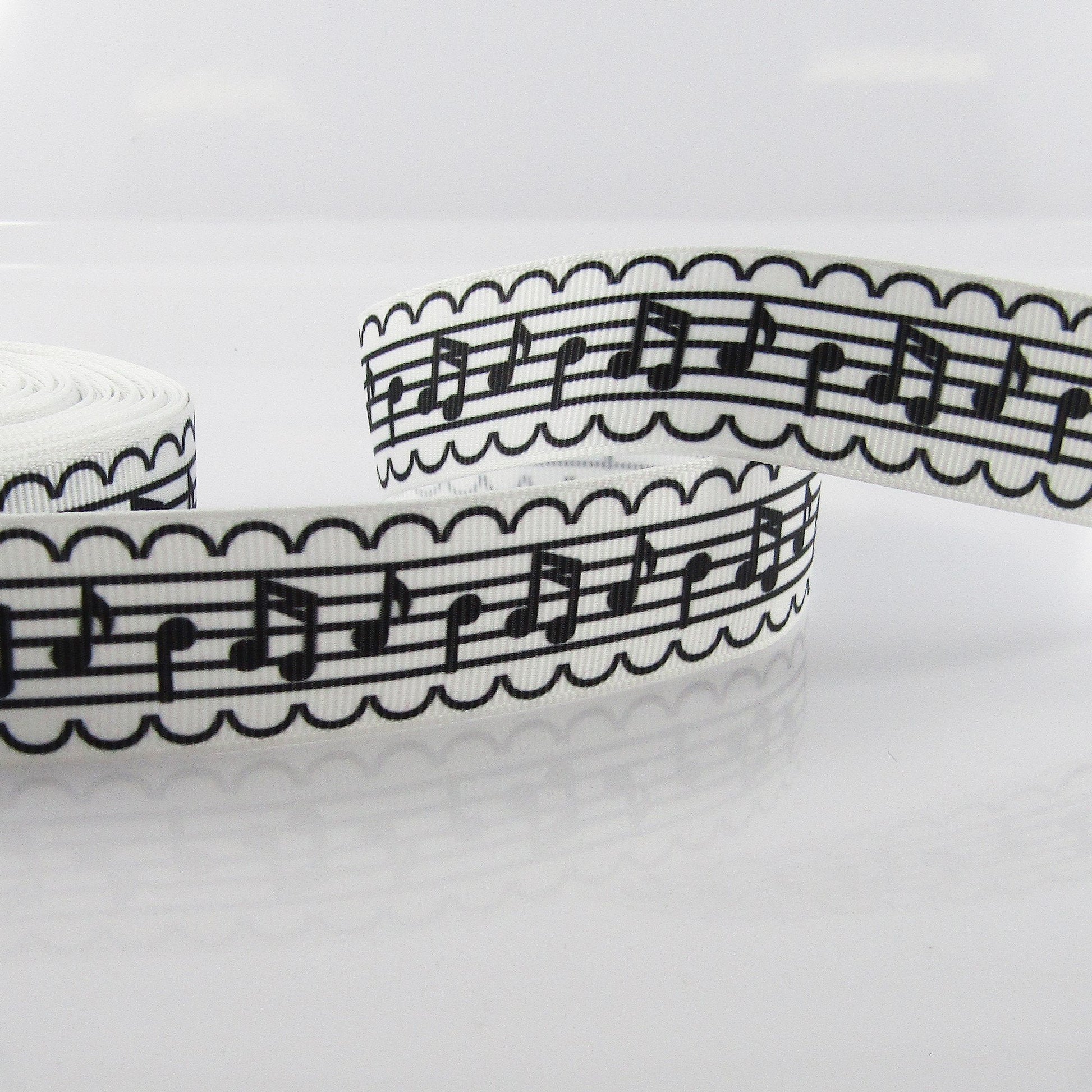 3metres Printed Musical Notes Grosgrain Ribbon Polyester 25mm