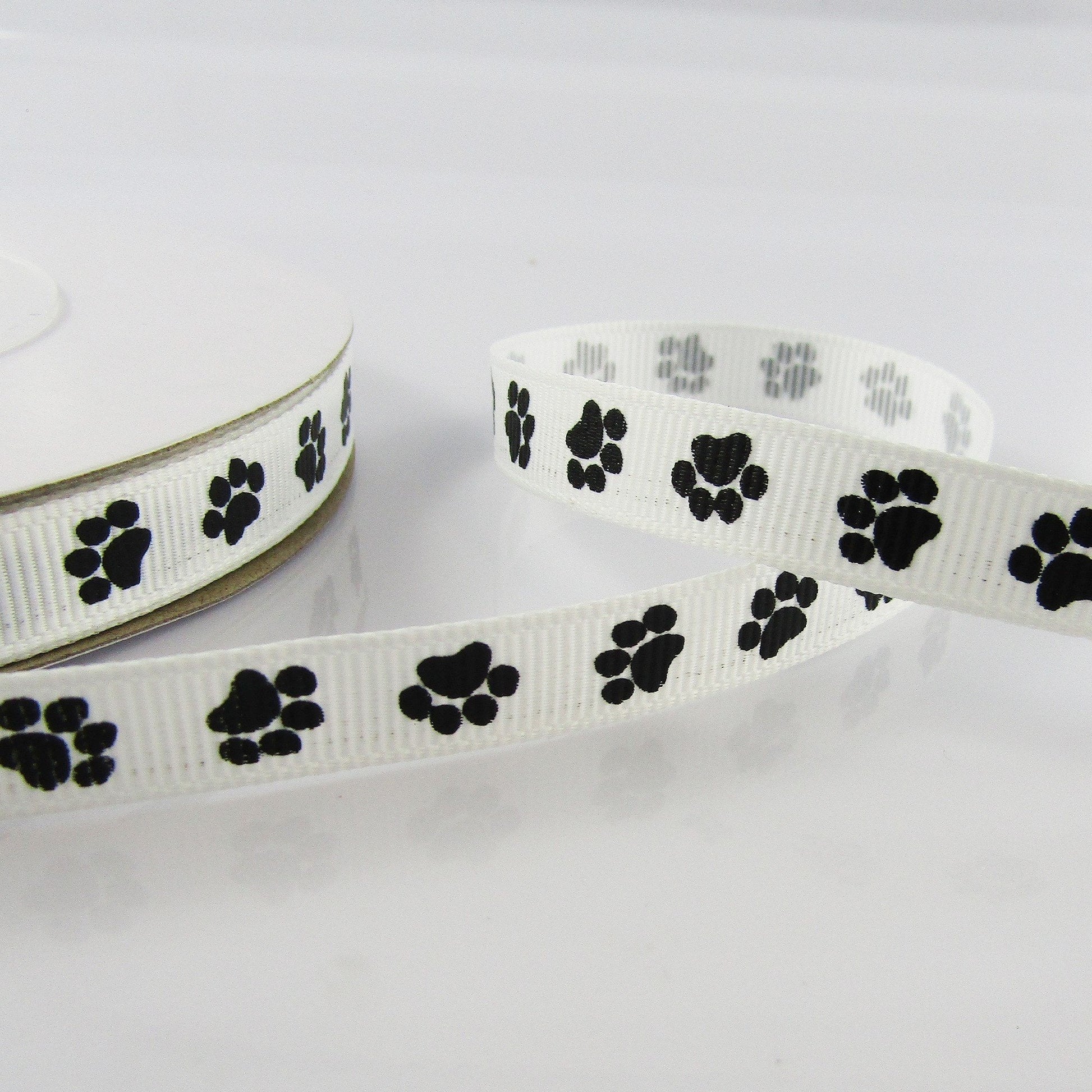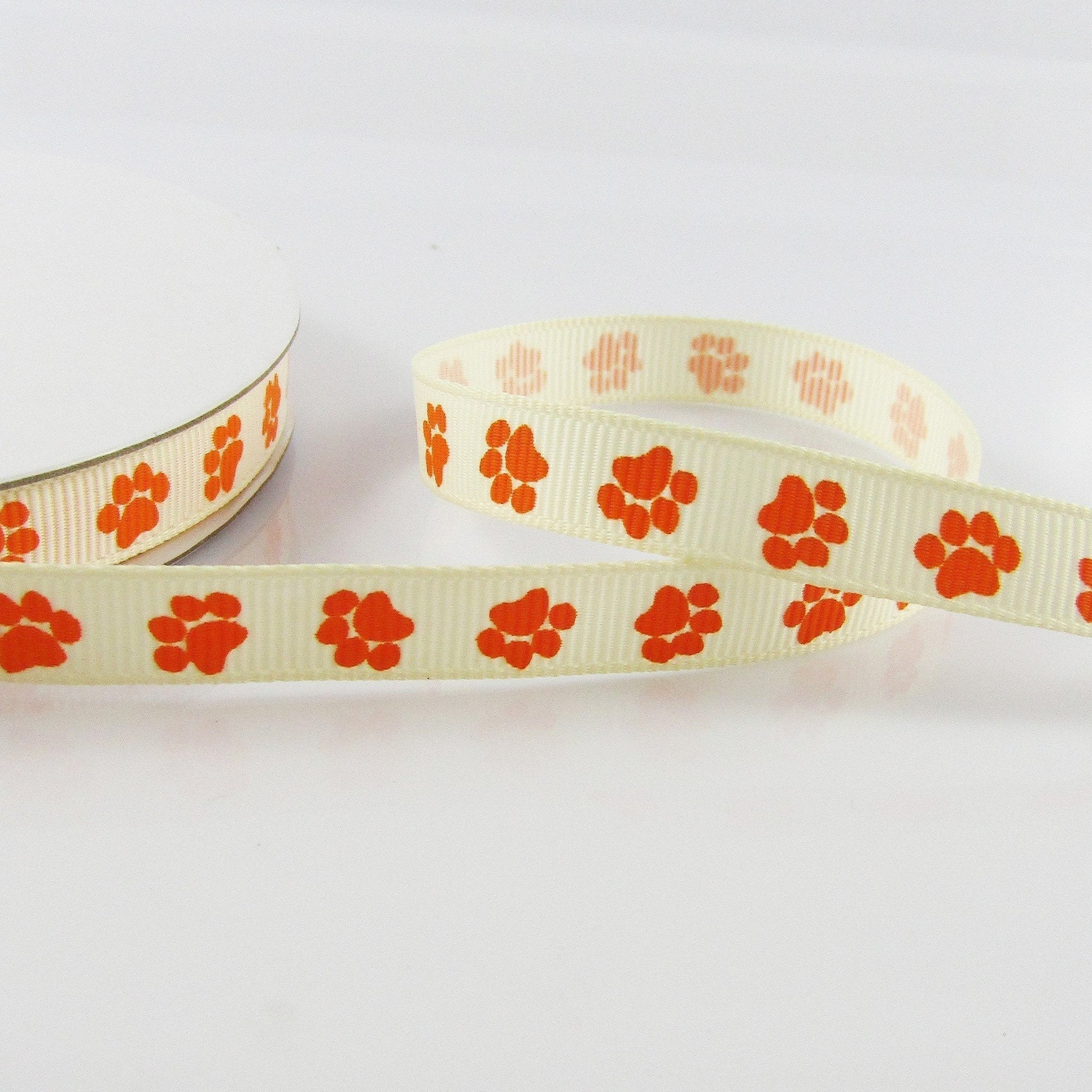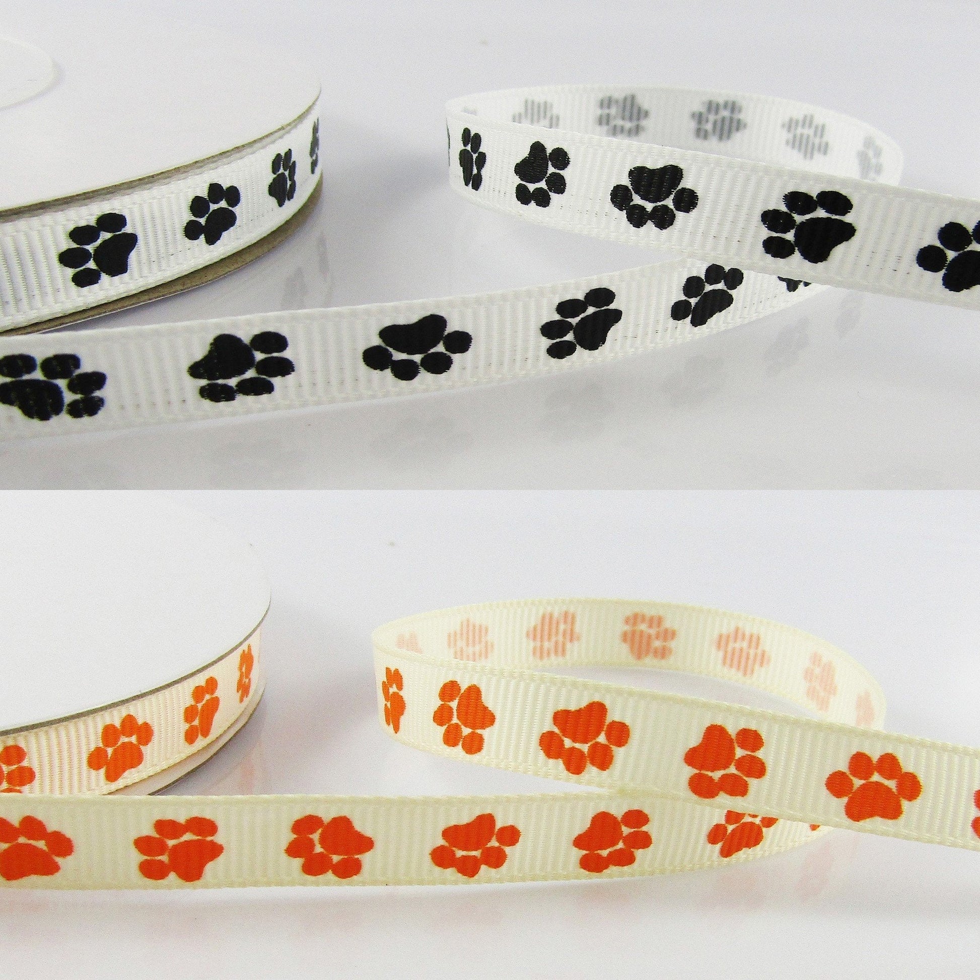 3metres Printed Paw Print Grosgrain Ribbon 10mm Select Black or Orange