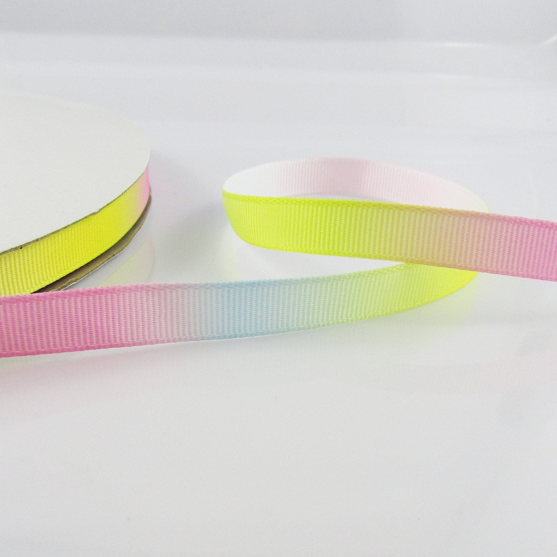 3metres Printed Pink Yellow Blue Gradient Grosgrain Ribbon 10mm
