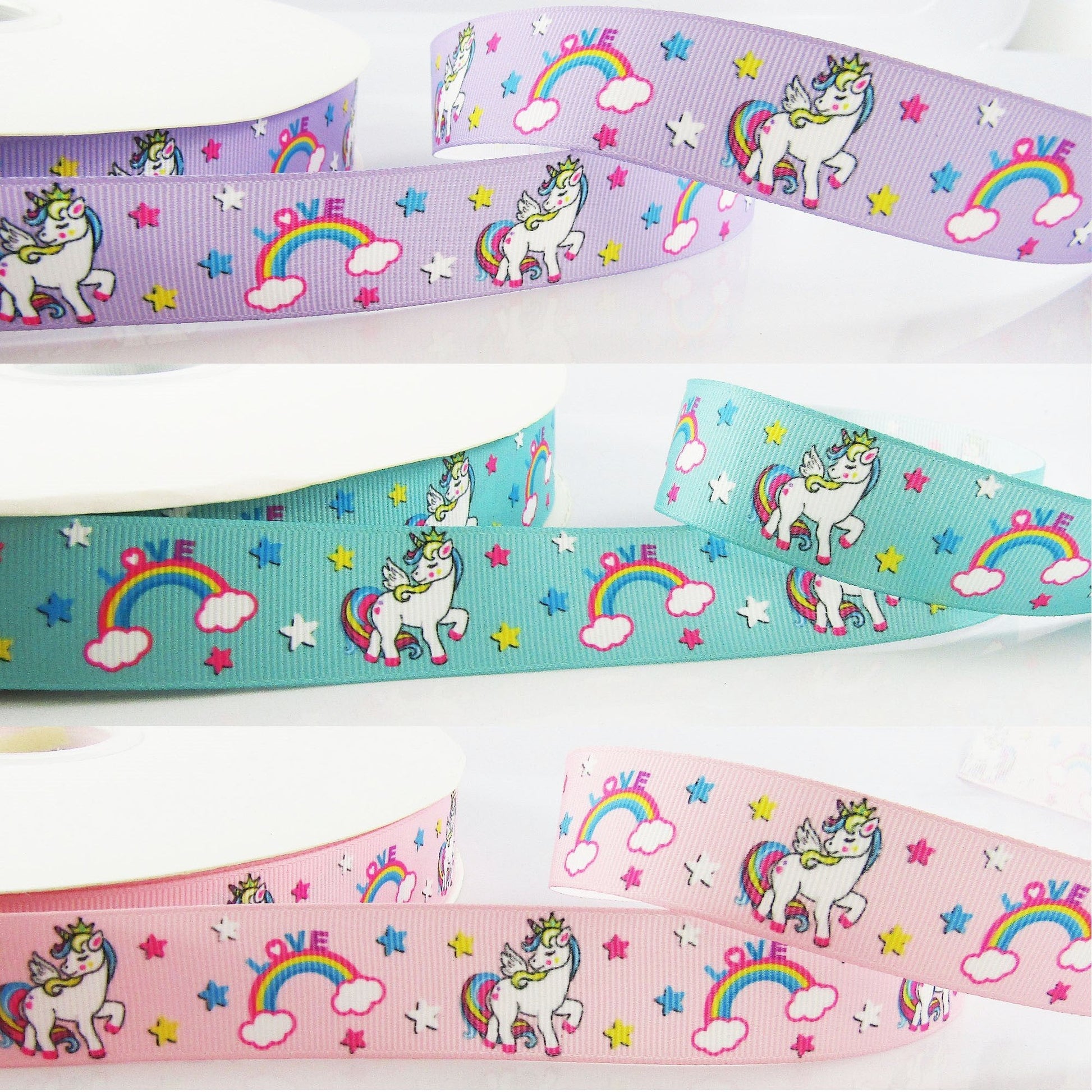 3metres Printed Rainbows & Unicorns Grosgrain Ribbon 25mm Select Colour