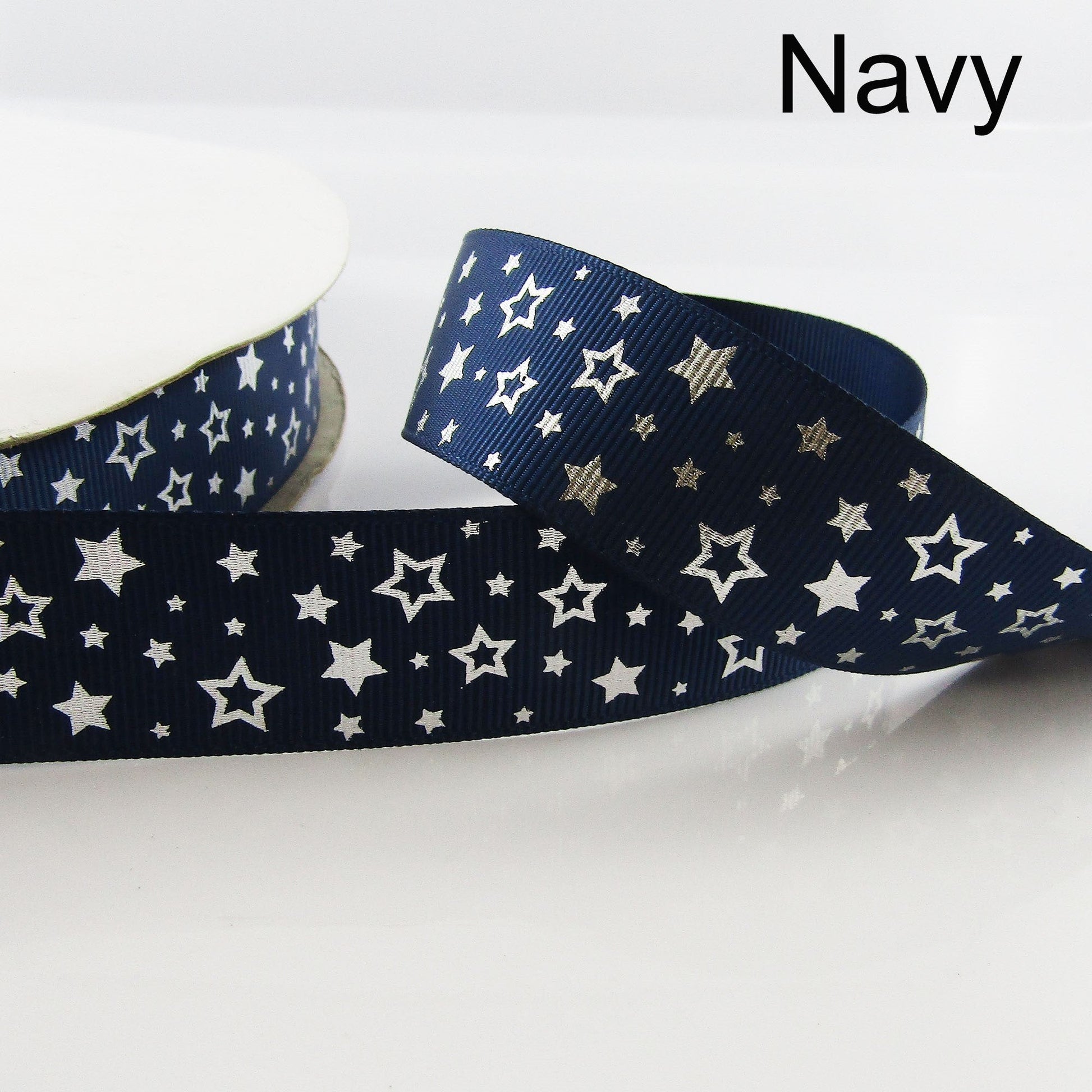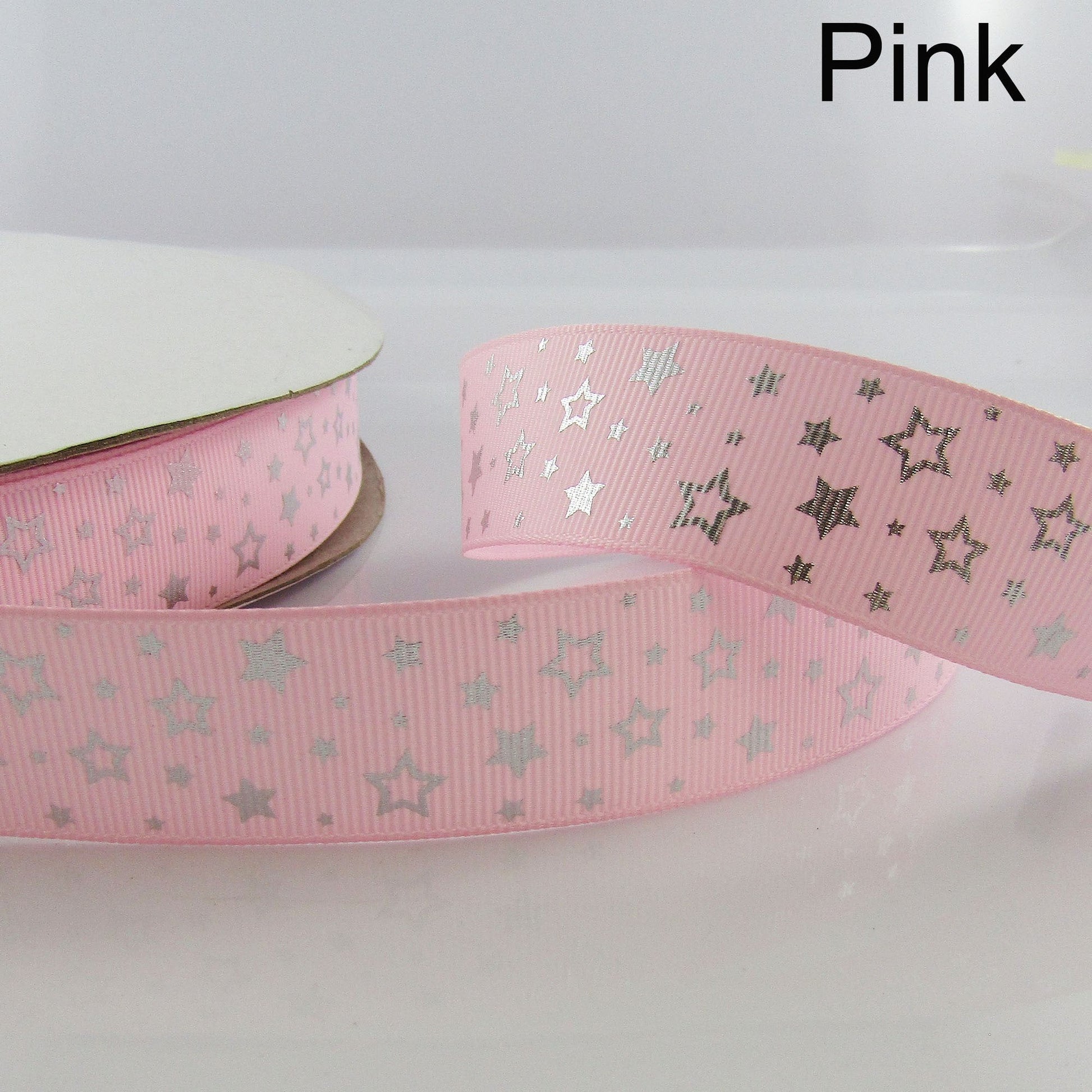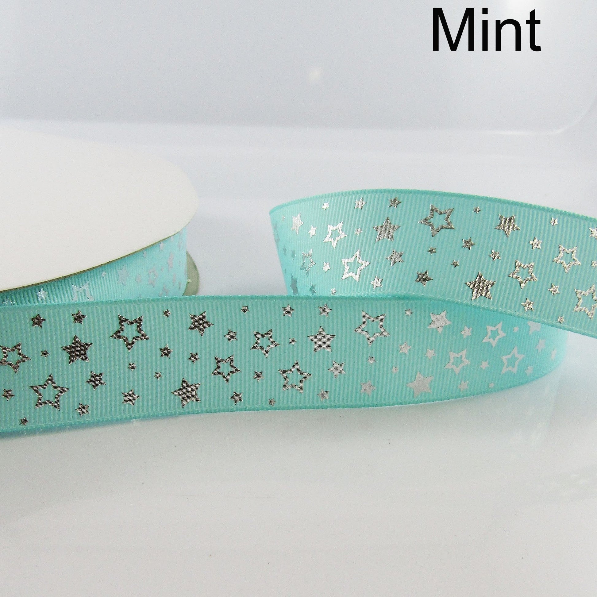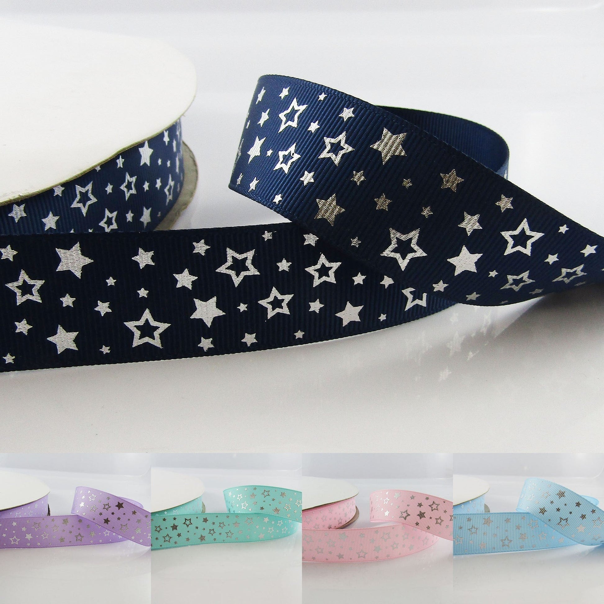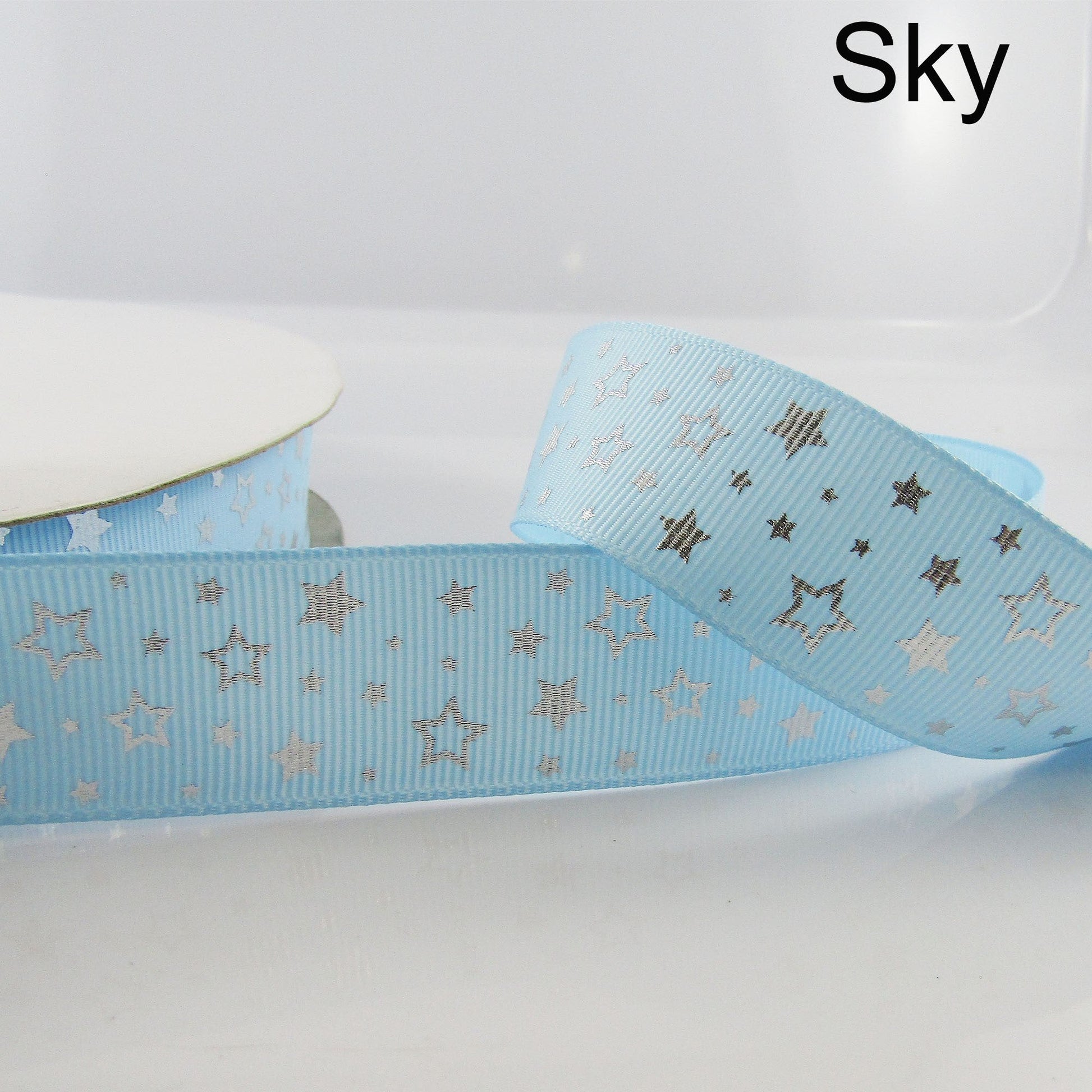 3metres Printed Silver Star Grosgrain Ribbon Single Face 25mm Select Colour