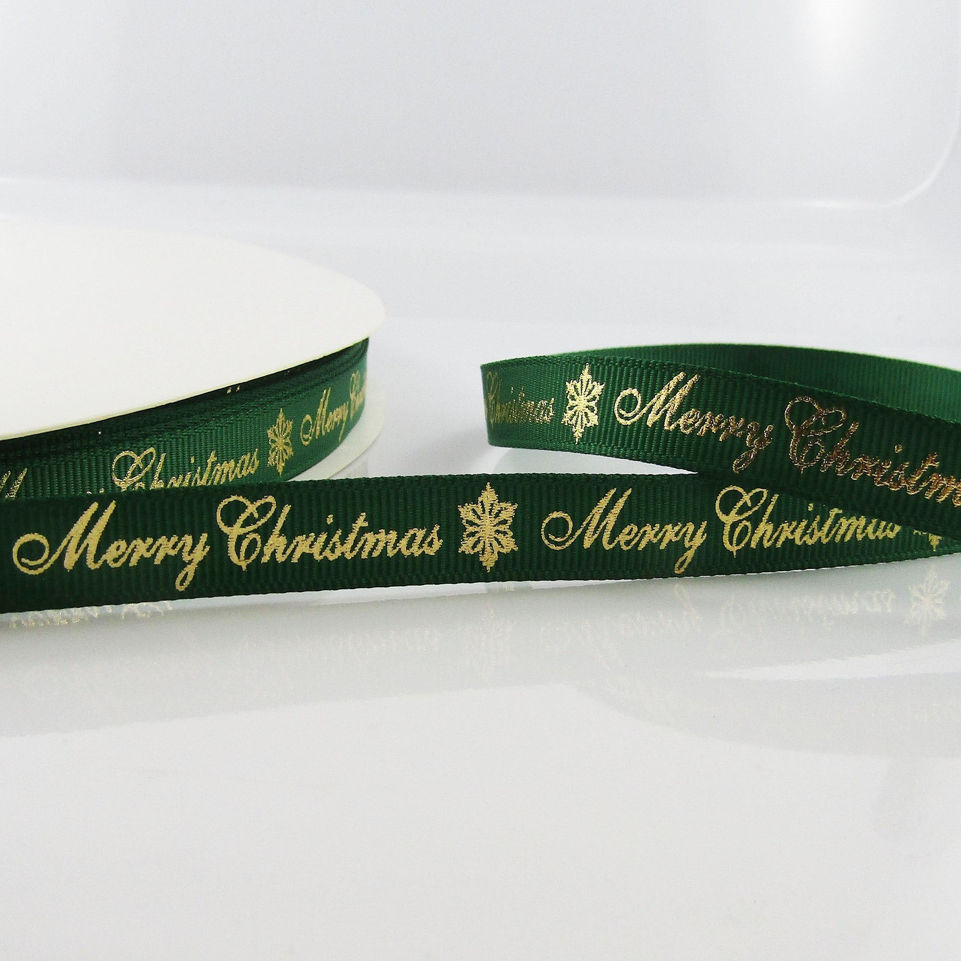 3metres Printed Snowflake Merry Christmas Grosgrain Ribbon 9mm