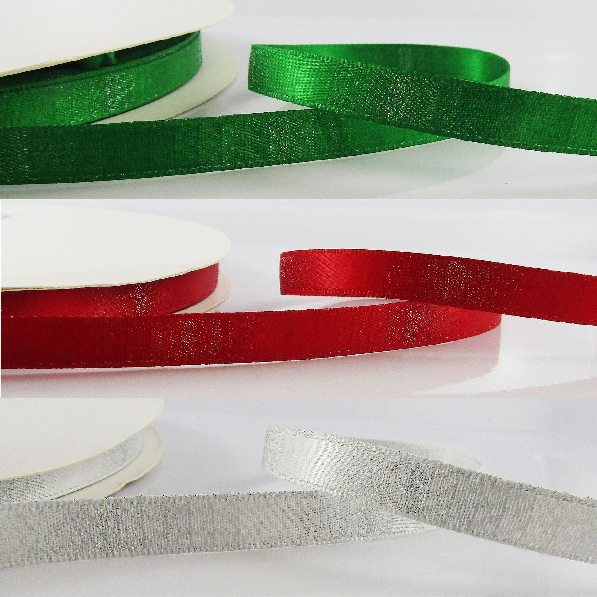 3metres Satin Glitter Ribbon 9mm Green Red or Silver Christmas Ribbon