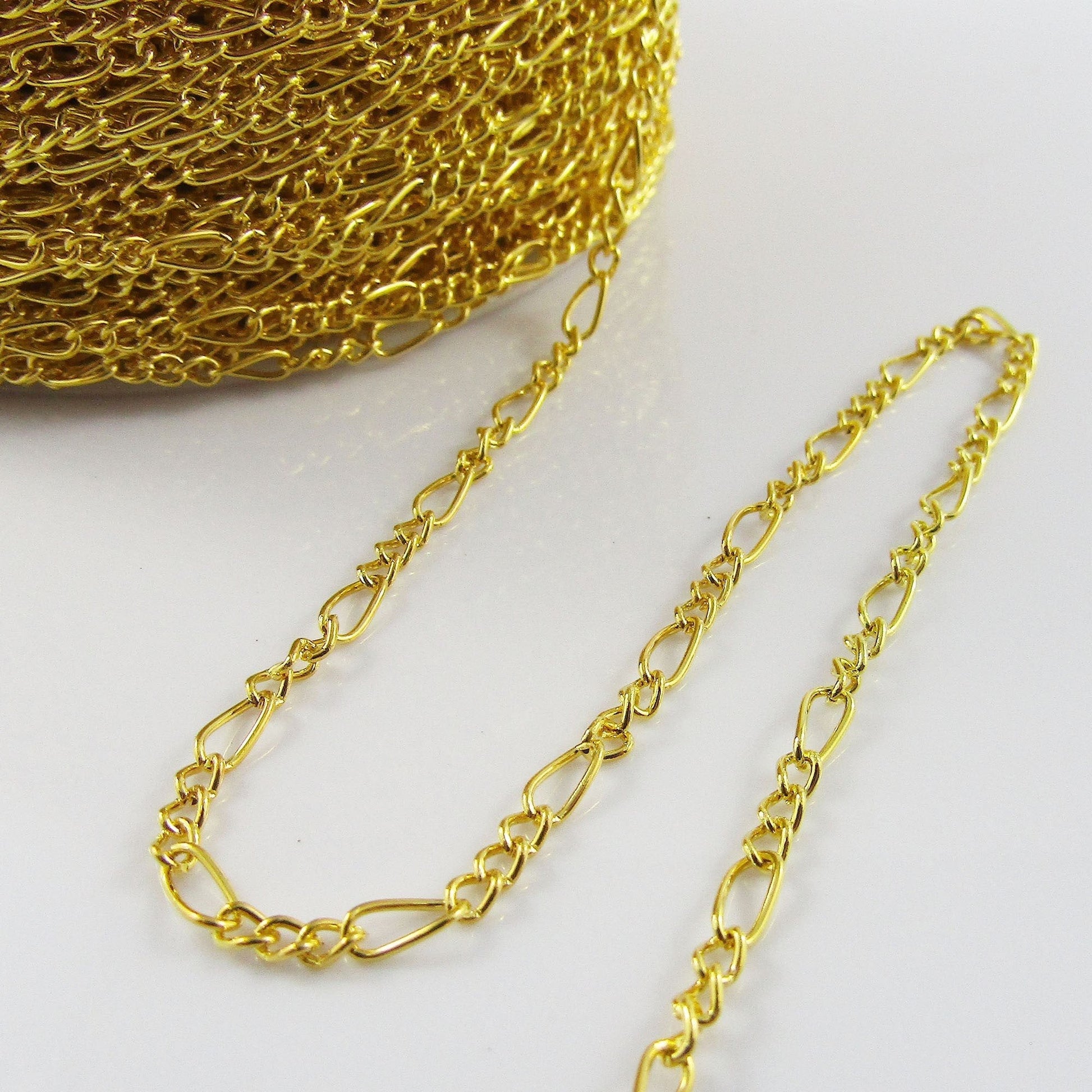3mtrs Figaro Mother-Son Chain Unsoldered Iron Links 3x7mm & 2.5x4mm Golden