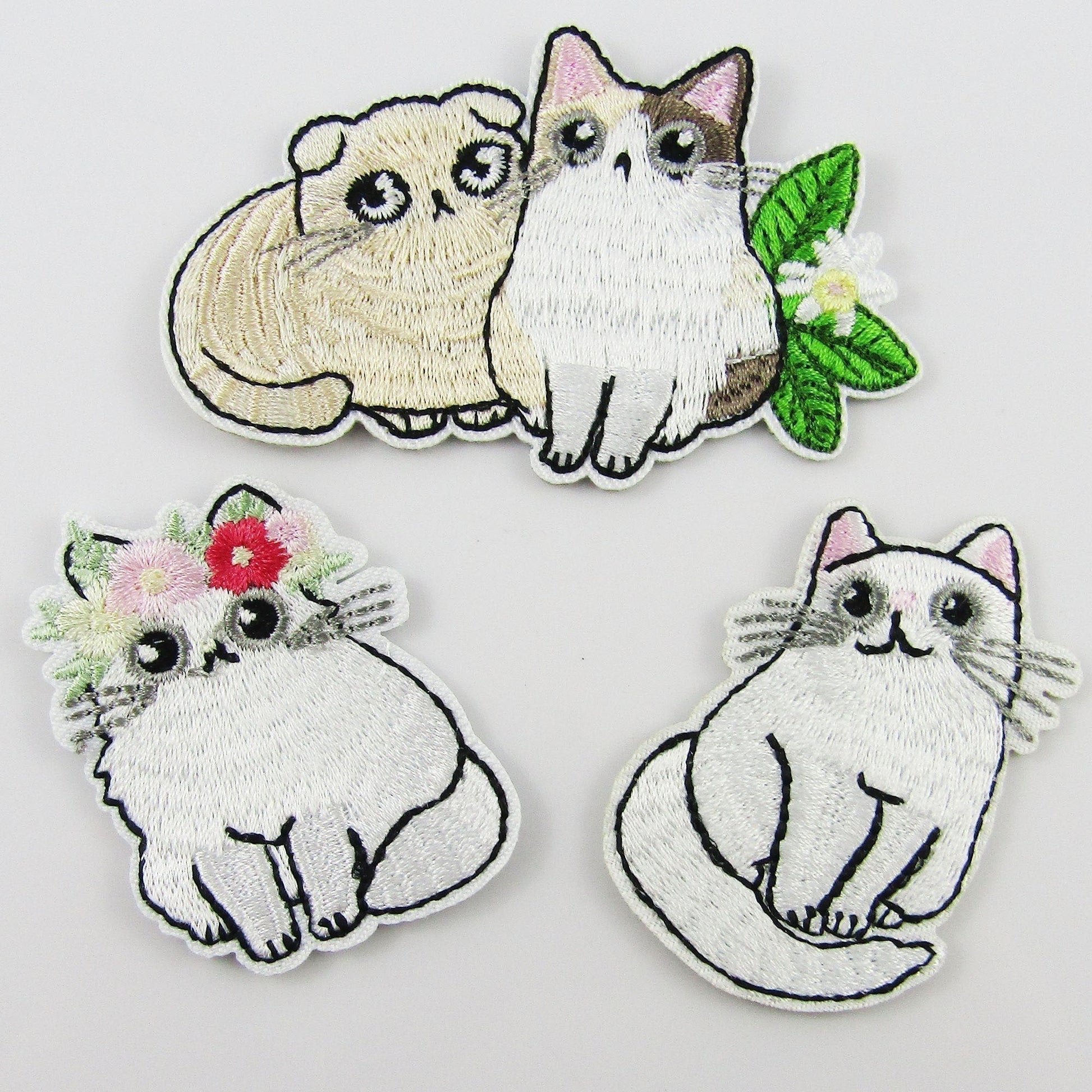 3pce Set Iron on / Sew On Cute Cat Cloth Patches 49-53 x 40-77mm