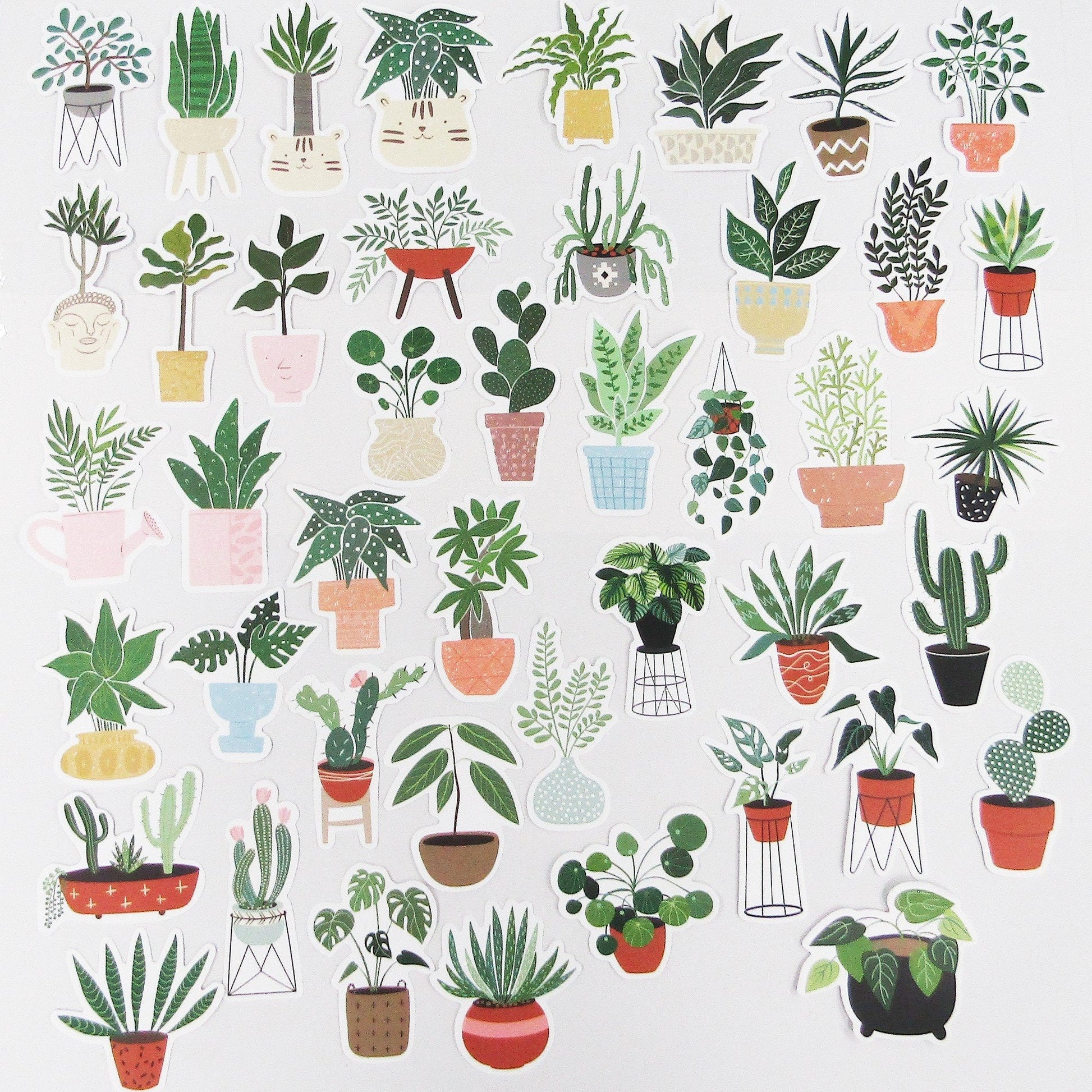 44pcs PVC Potted Plants Sticker Bundle Scrapbooking Cards Junk Journal & More