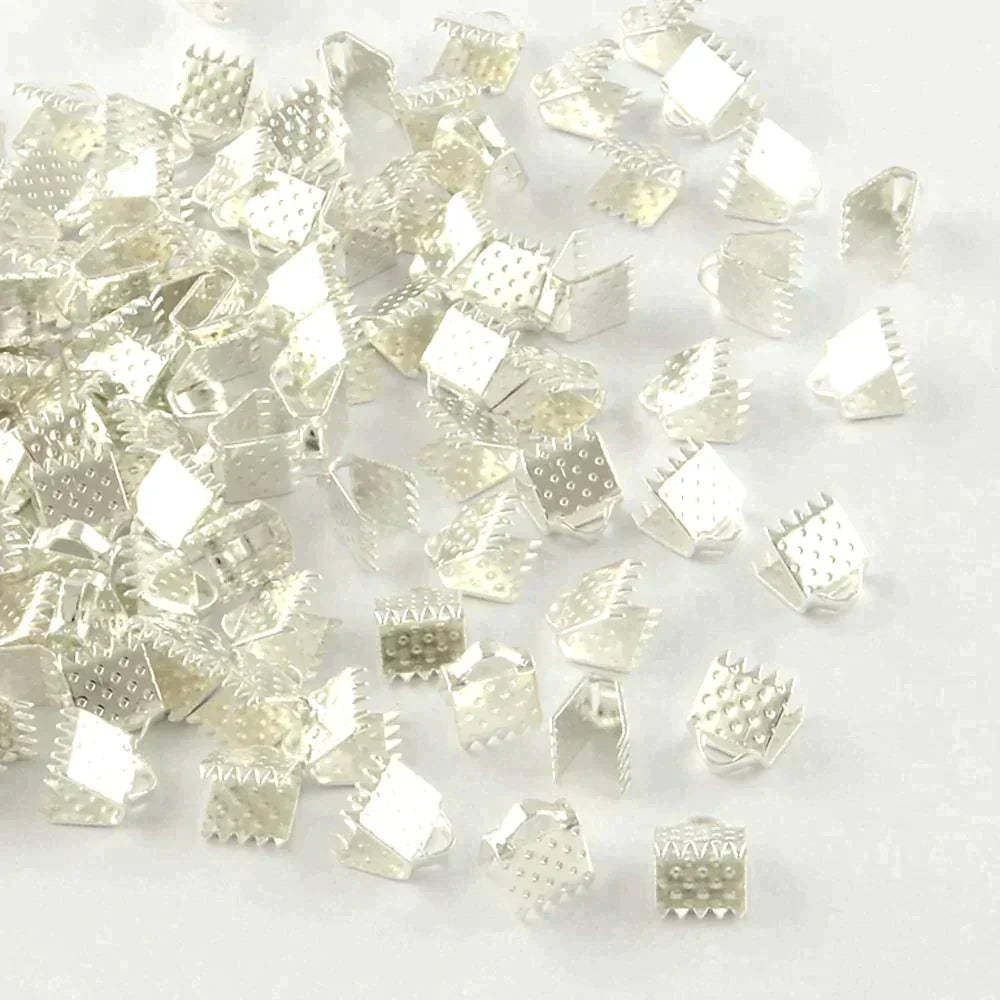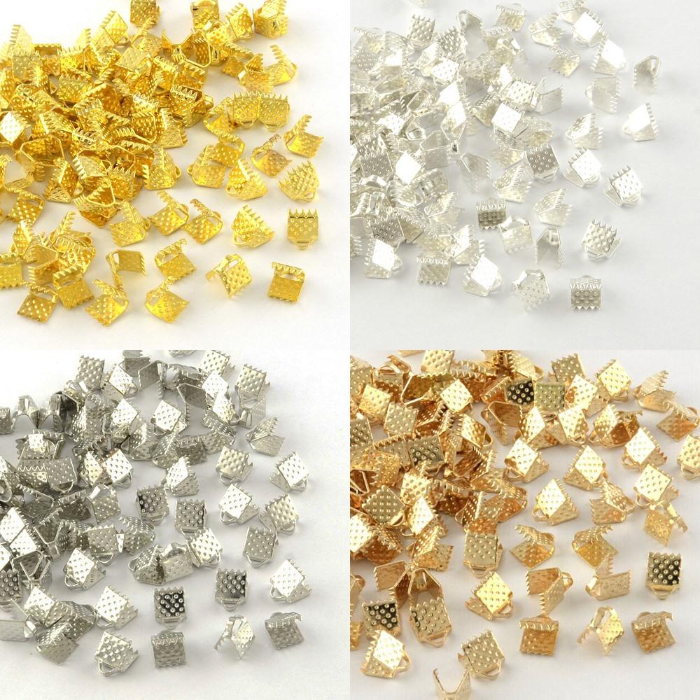 50 Sets (100pcs) Ribbon Cord Crimp End Caps with Loop Iron 6x7mm Select Colour