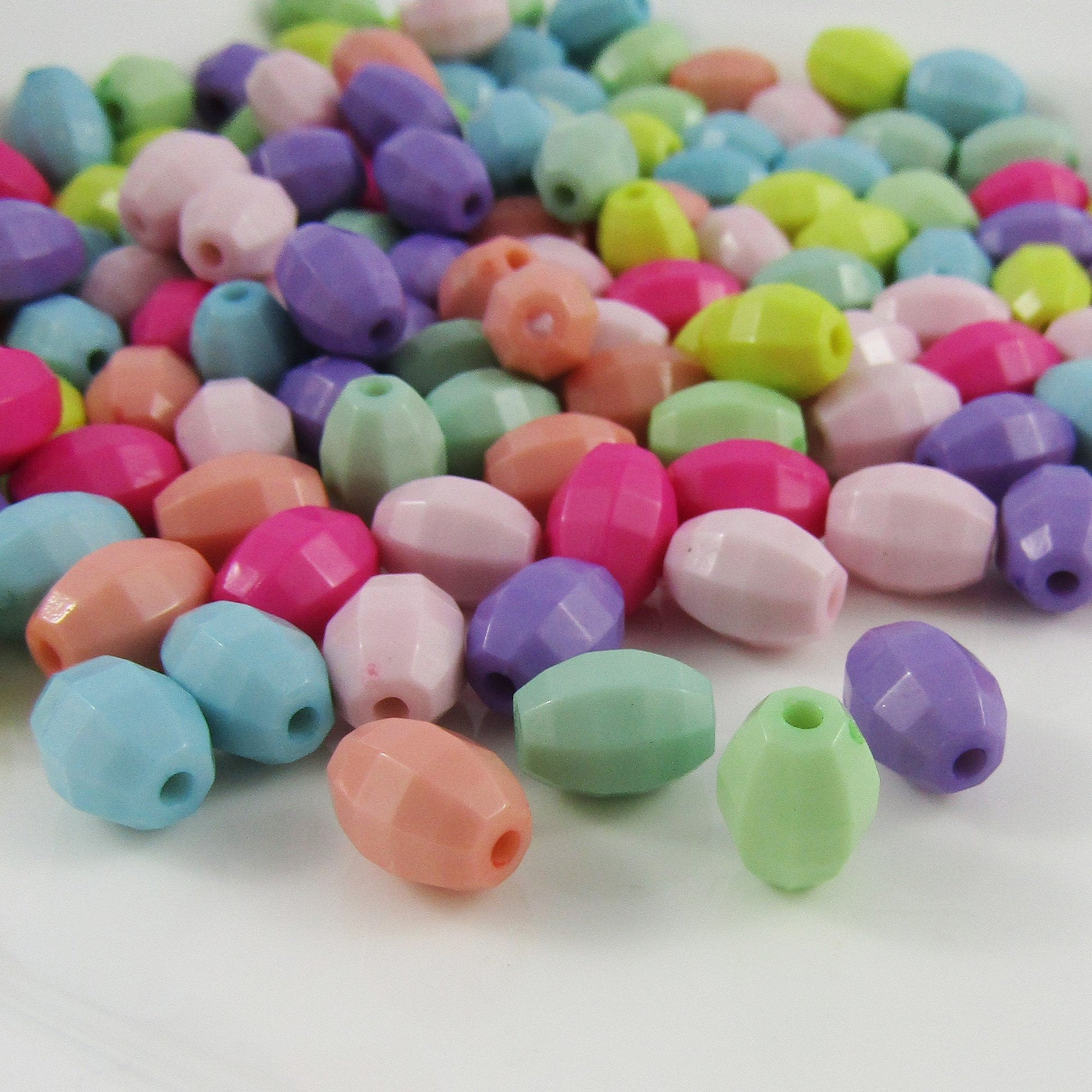 50g 139+pcs Acrylic Faceted Oval Beads Opaque Pastels 10x7mm Hole 1.6mm