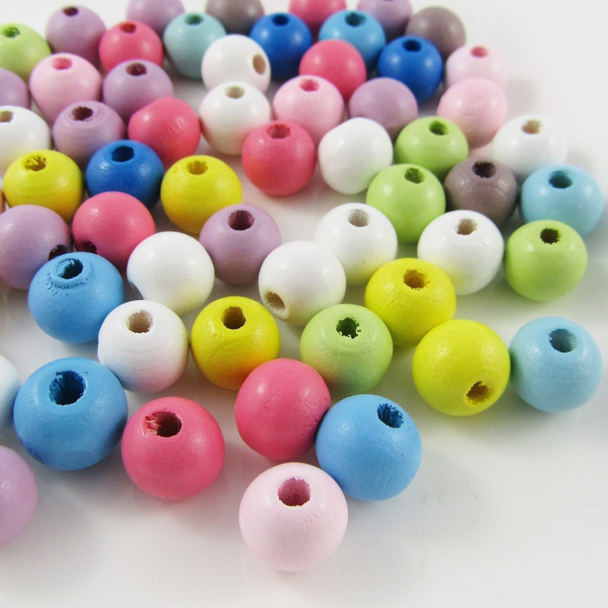50g 150+pcs Wood Round Craft Beads Mixed Pastels 9x10mm Hole 2.5mm