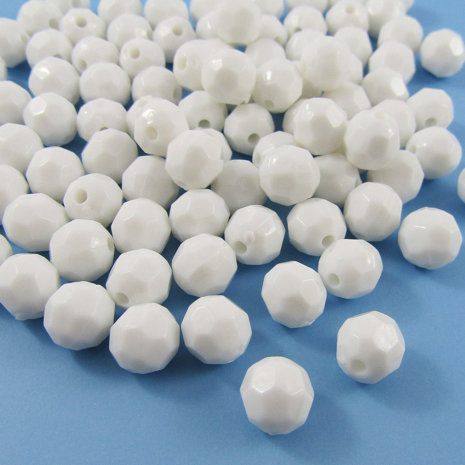 50g 185+pcs Acrylic Faceted Round Opaque White 8x8mm Hole 1.2mm