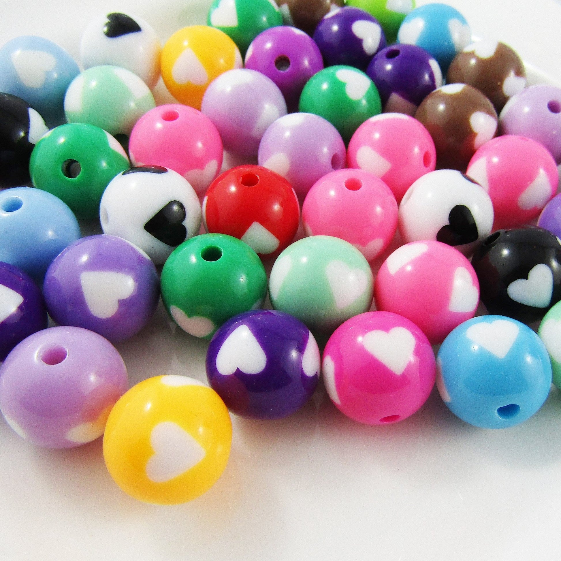 50g 20+pcs Acrylic Love Heart Gumball Round Opaque Mixed 16mm Hole 3mm