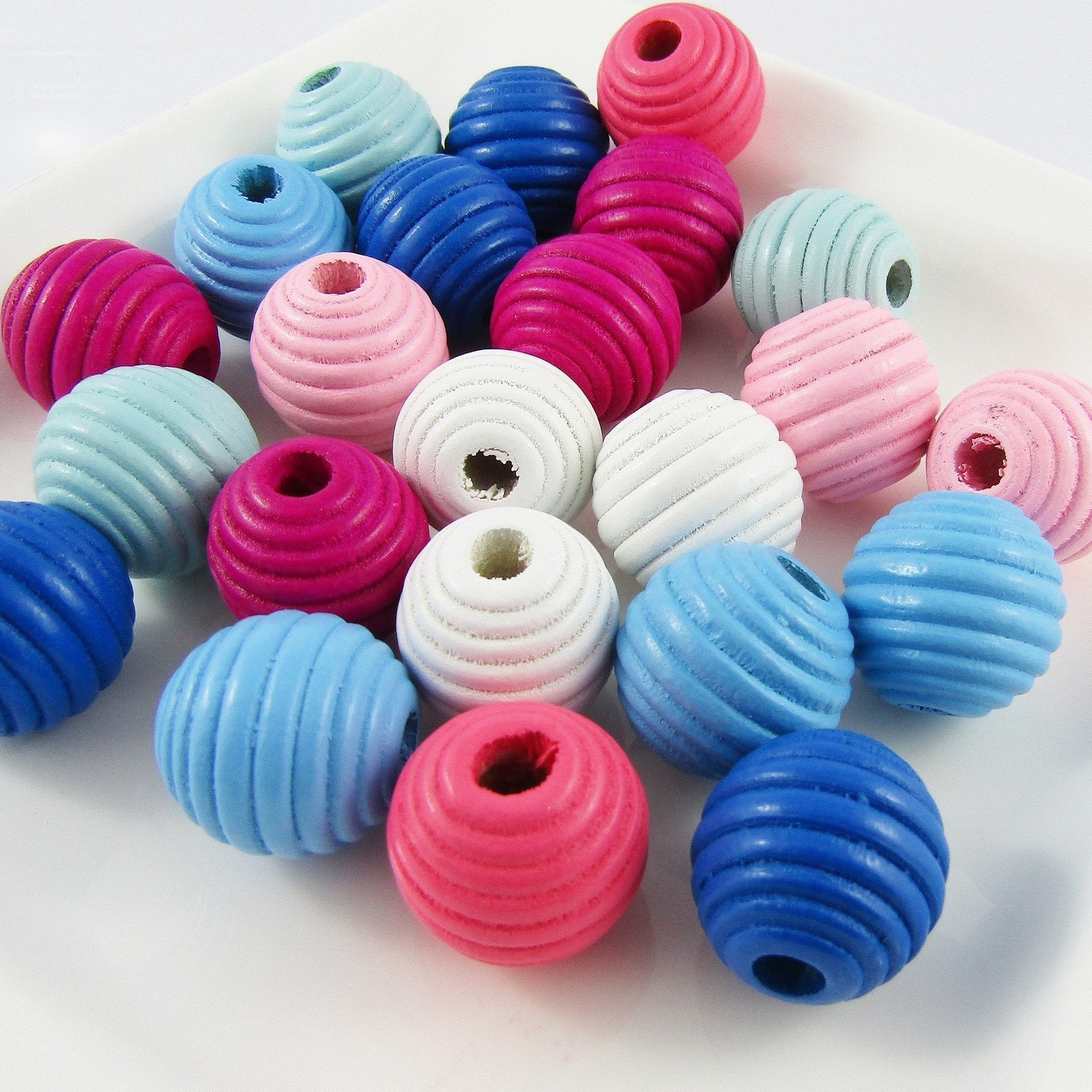 50g 20+pcs Wood Beehive Round Craft Beads Mixed Pink Blue White 19x20mm Hole 5mm