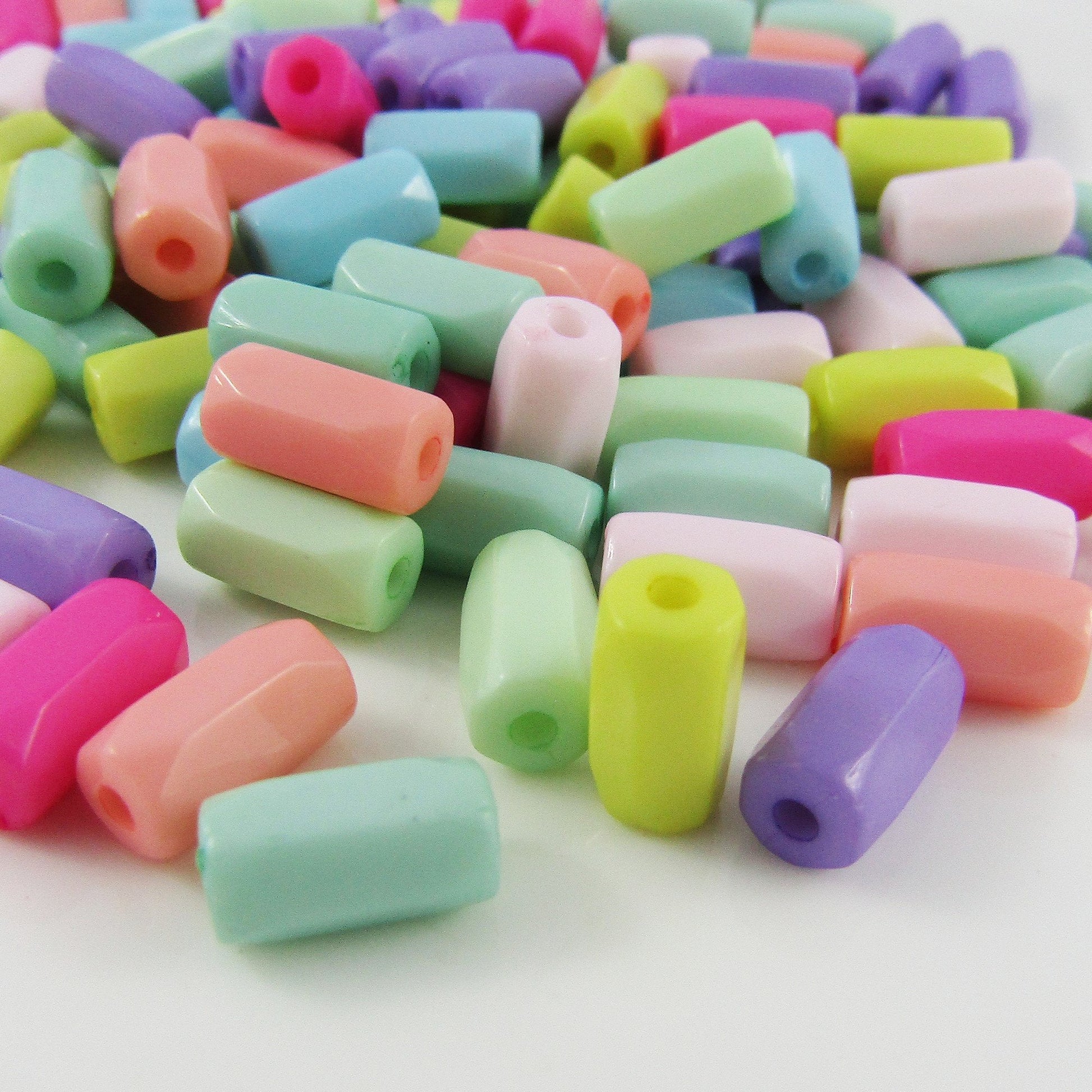 50g 211+pcs Acrylic Tube Beads Opaque Pastels 10x5mm Hole 1.6mm