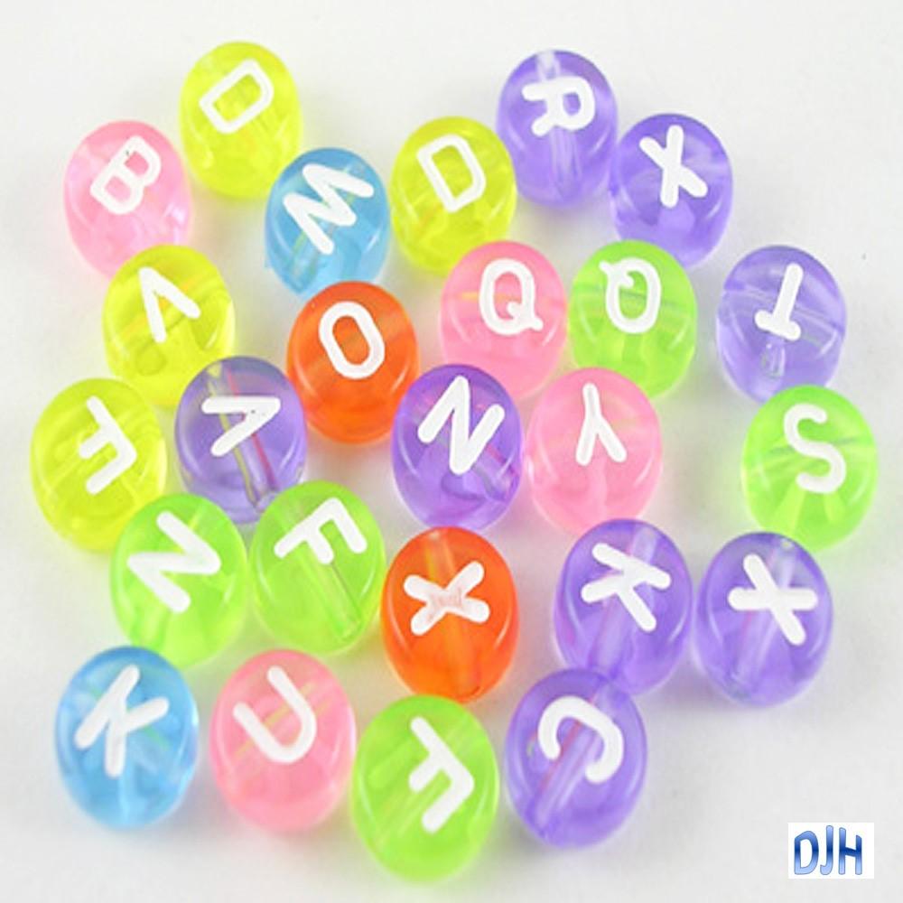 50g 350+pcs Acrylic Transparent Round Letter Craft Beads 7x3.5mm Hole 1mm Mixed