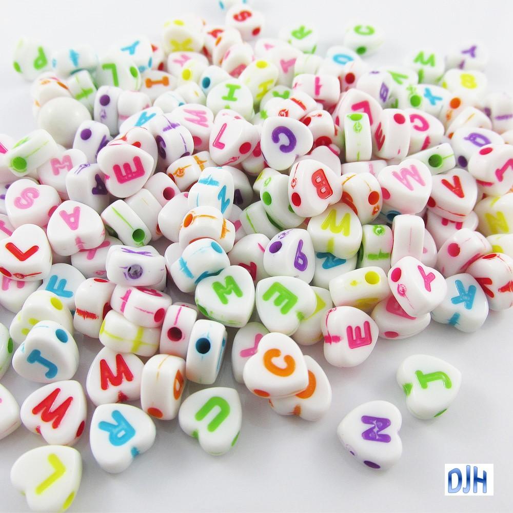 50g 360+pcs Acrylic Heart Letter Craft Beads White 7x4mm Hole 1mm Mixed