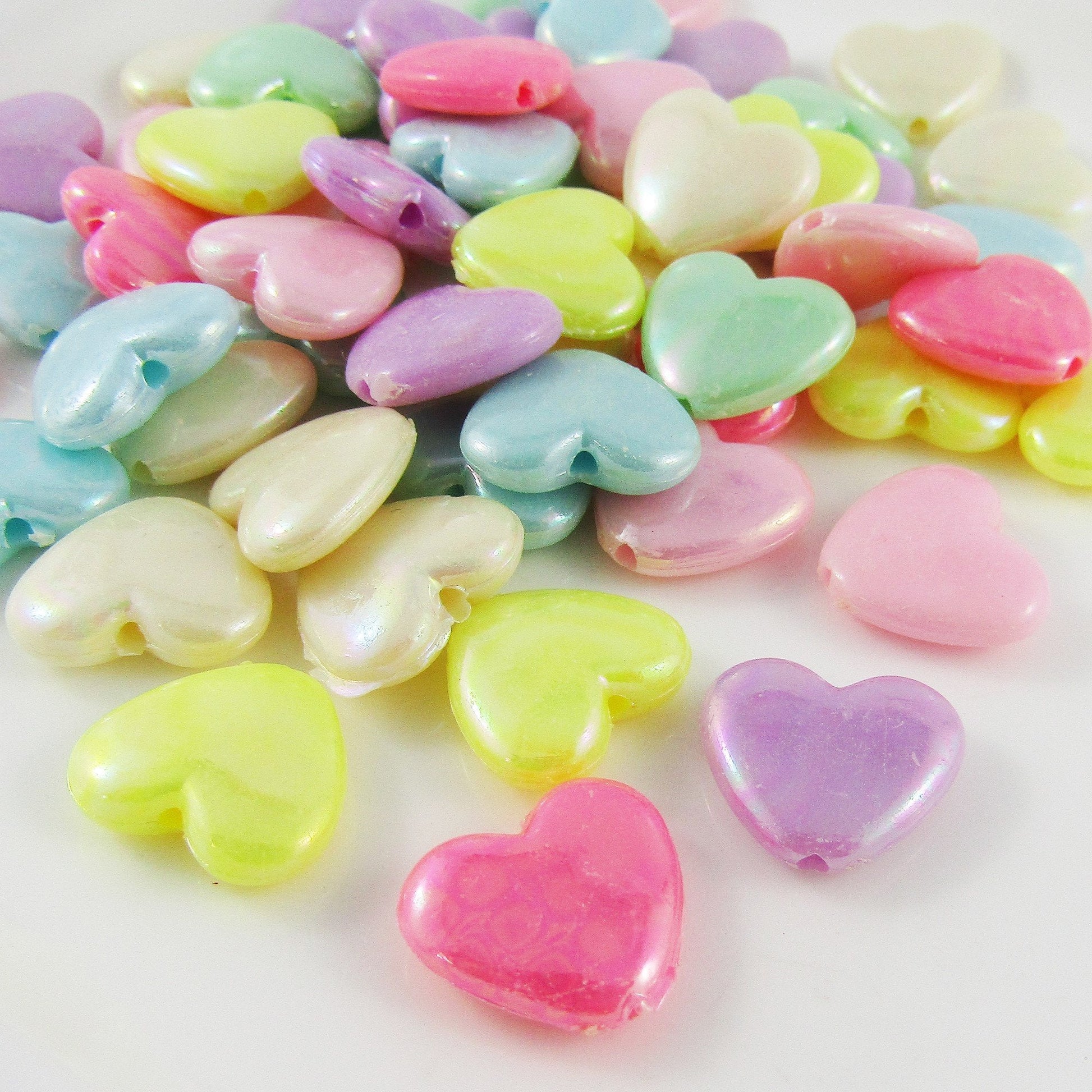 50g 80+pcs Opaque Acrylic Love Heart Craft Beads Mixed Pastel 14x15mm Hole 1.5mm