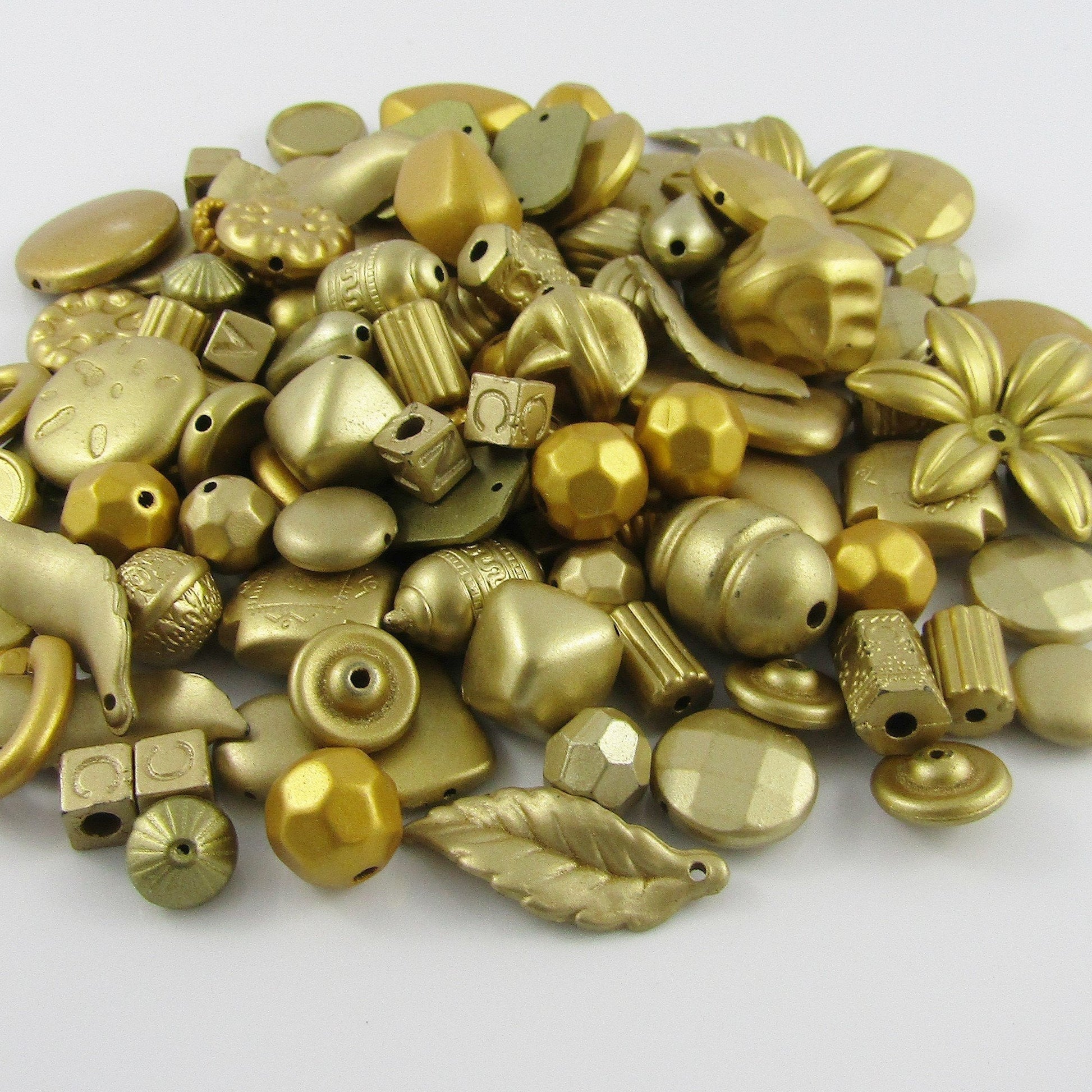 50gram Matt Gold Acrylic Beads Random Mixed Shape & Size for Jewellery Making!