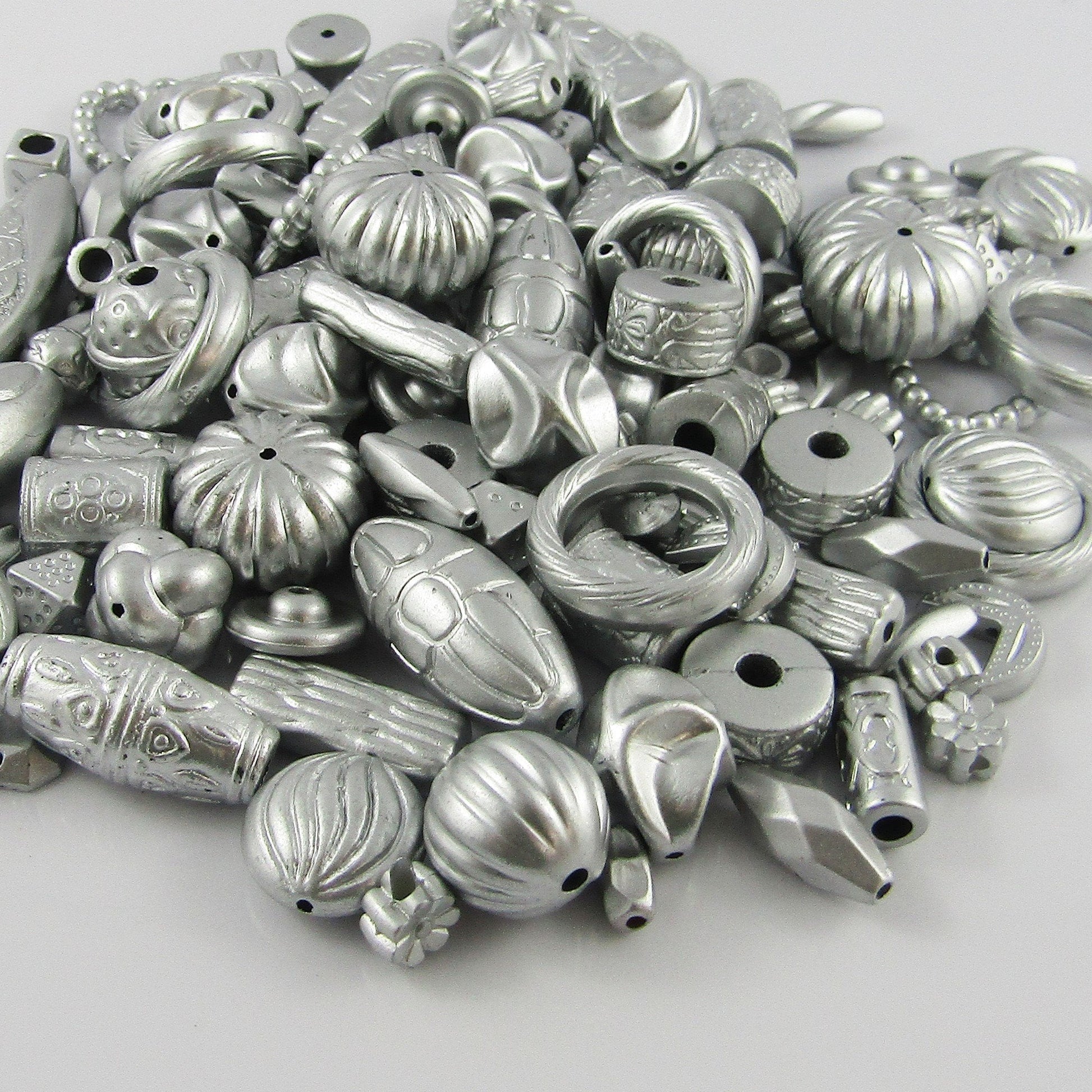 50gram Matt Silver Acrylic Beads Random Mixed Shape & Size for Jewellery Making!