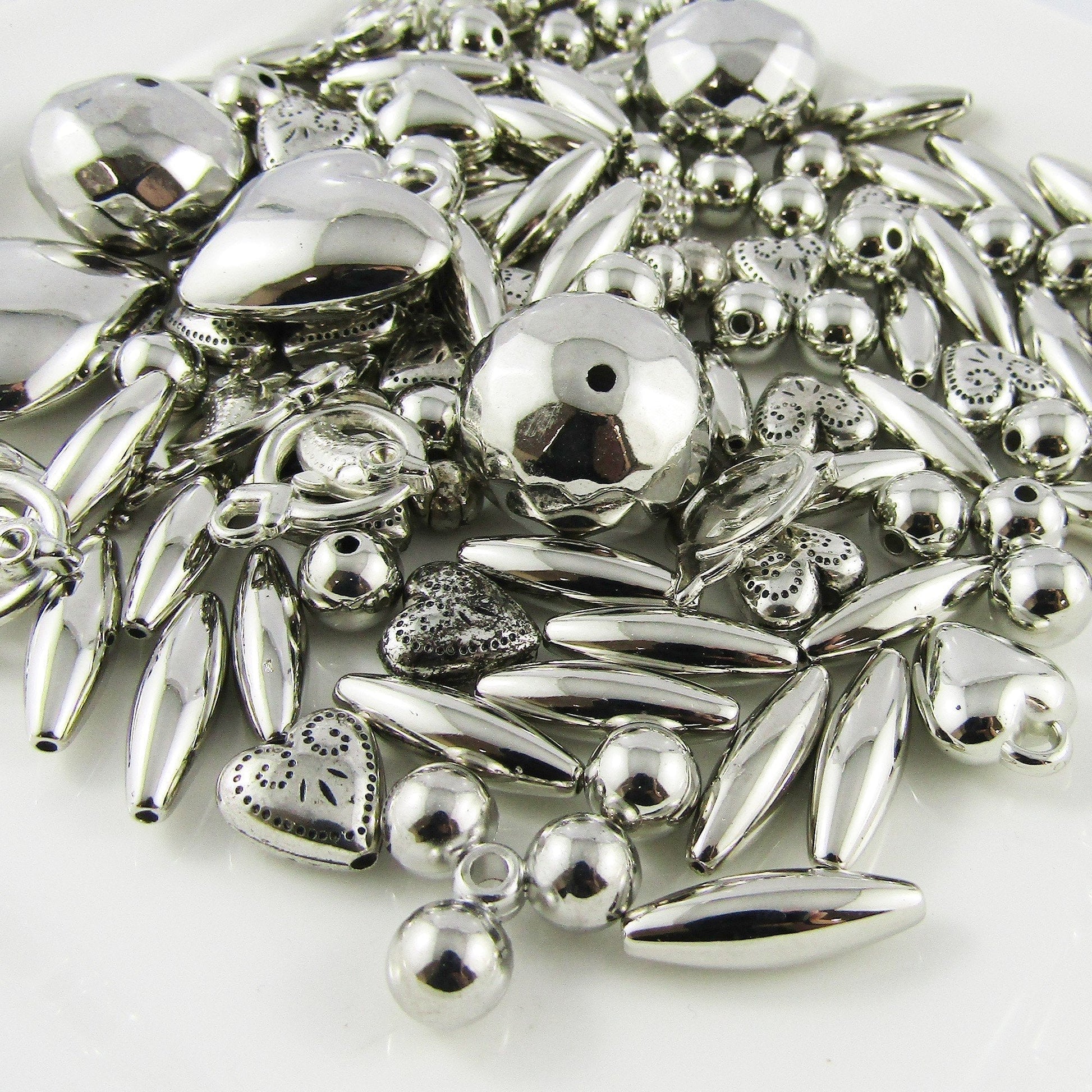 50gram Silver CCB Acrylic Beads Random Mixed Shape & Size for Jewellery Making!