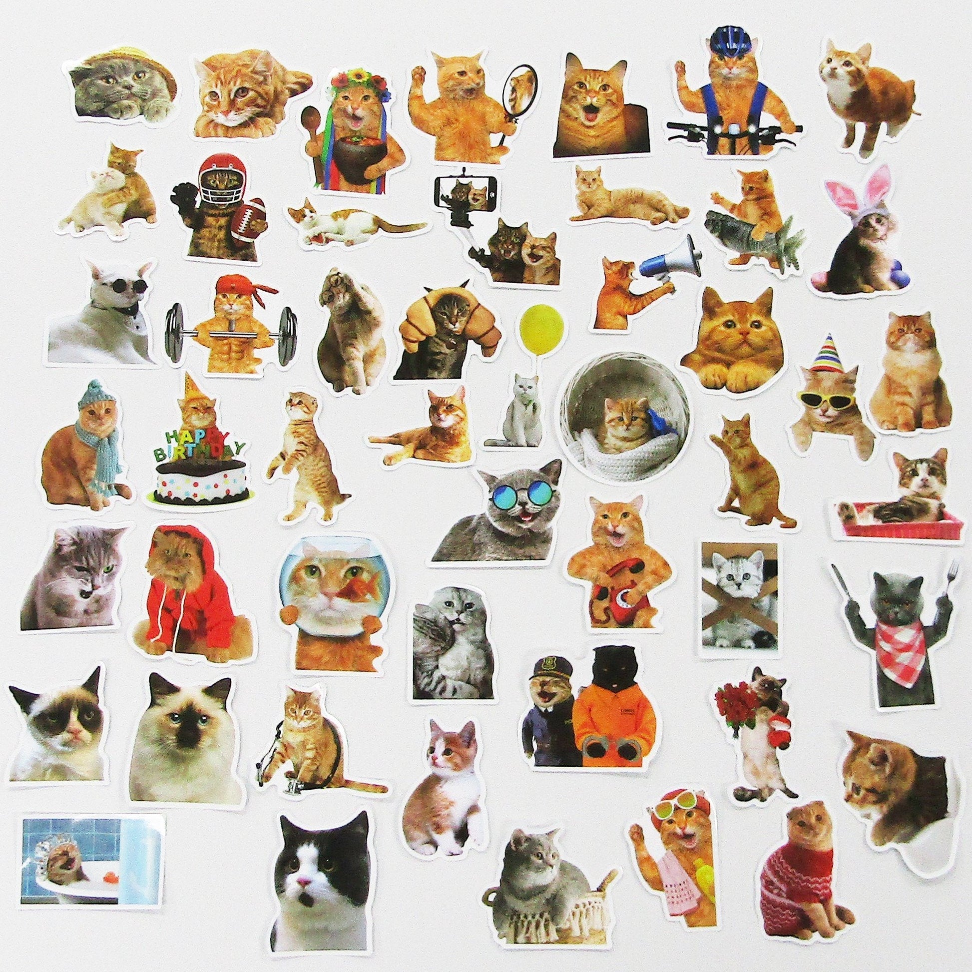 50pcs Funny Cats Sticker Bundle Schoolbooks Cards Junk Journal