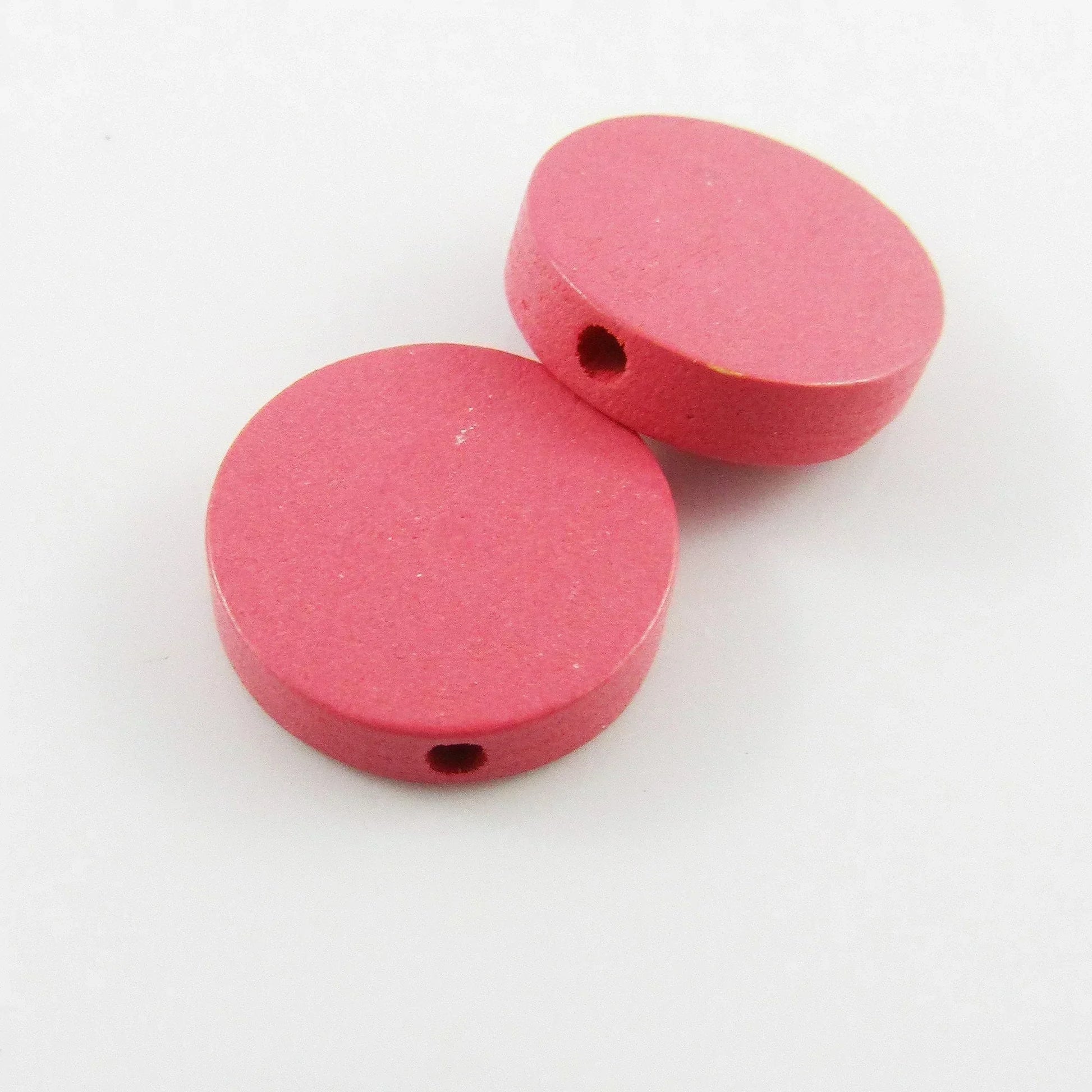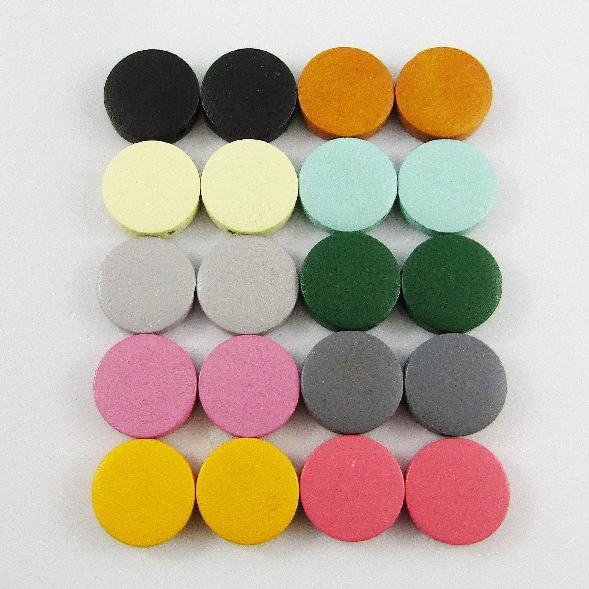 50pcs in random pairs Flat Round Disc Bead Painted Wood 15x4mm Hole 1.5mm