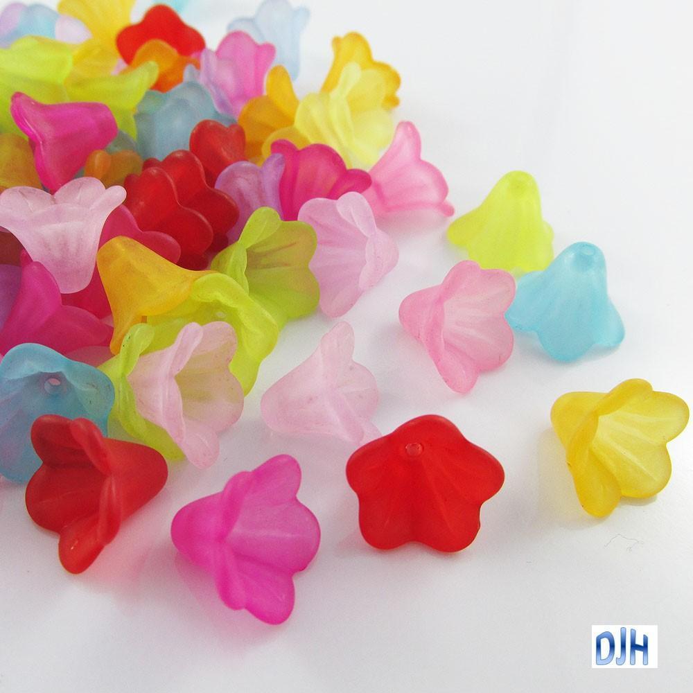 50pcs Lily Flower Bead Craft Beads Frosted Acrylic Mixed 14x10mm Hole 1.2mm
