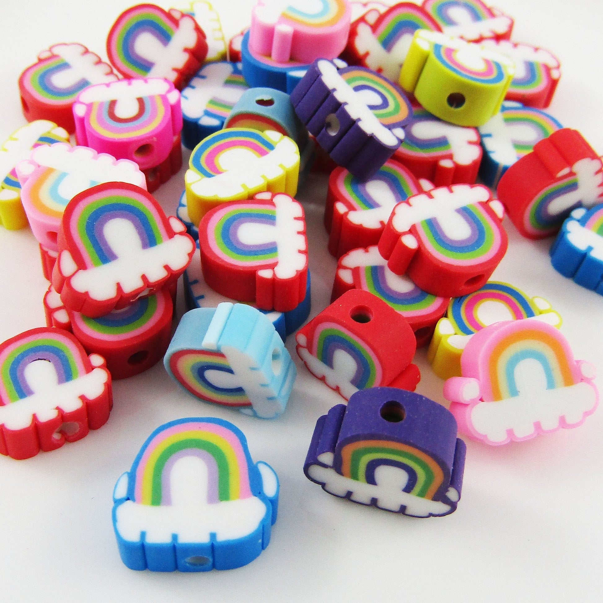 Bulk 50pcs Polymer Clay Cloud Rainbow 9.5x11x4.5mm Hole 1.8mm