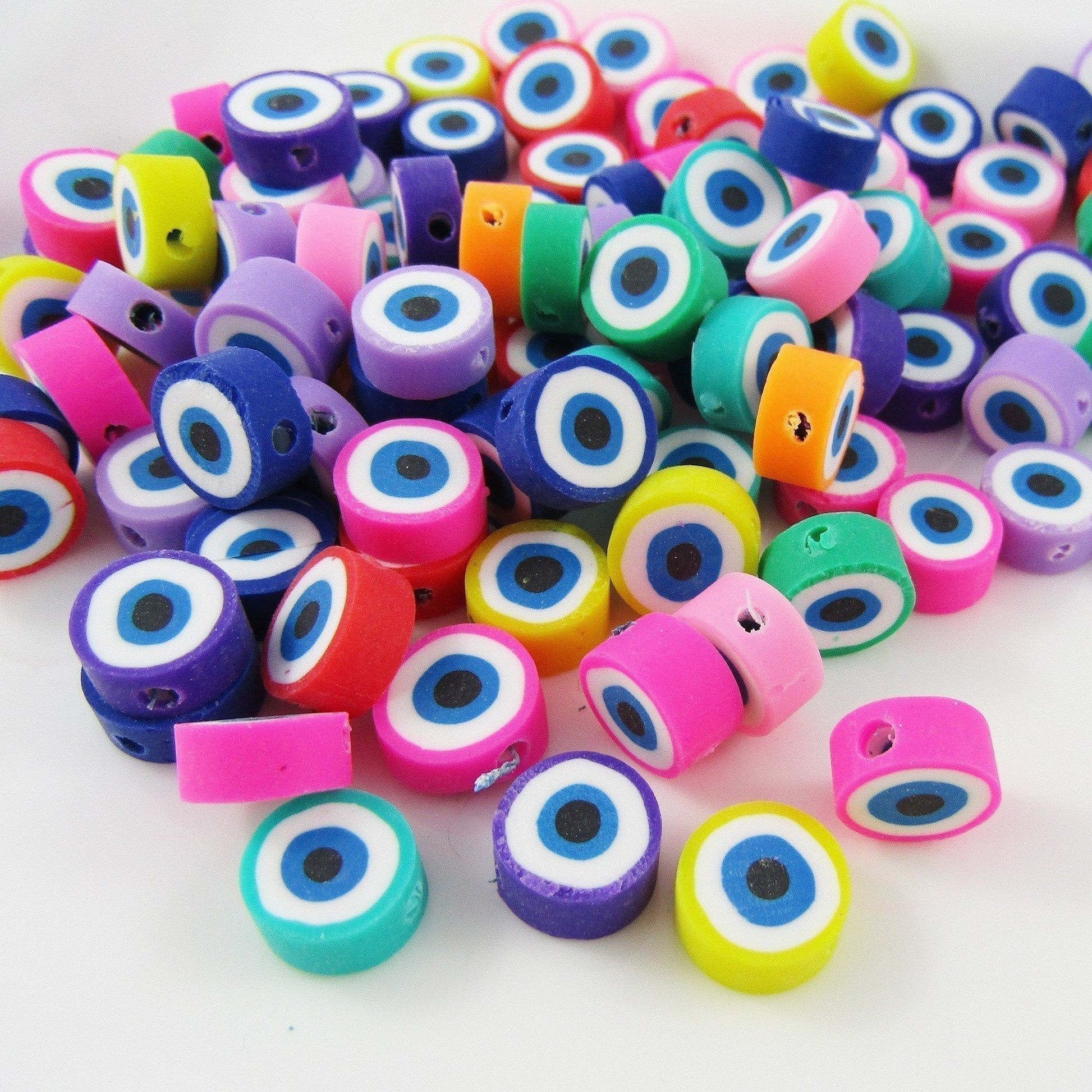50pcs Polymer Clay Evil Eye Bead Approx 10x10x5mm Hole 1.2mm