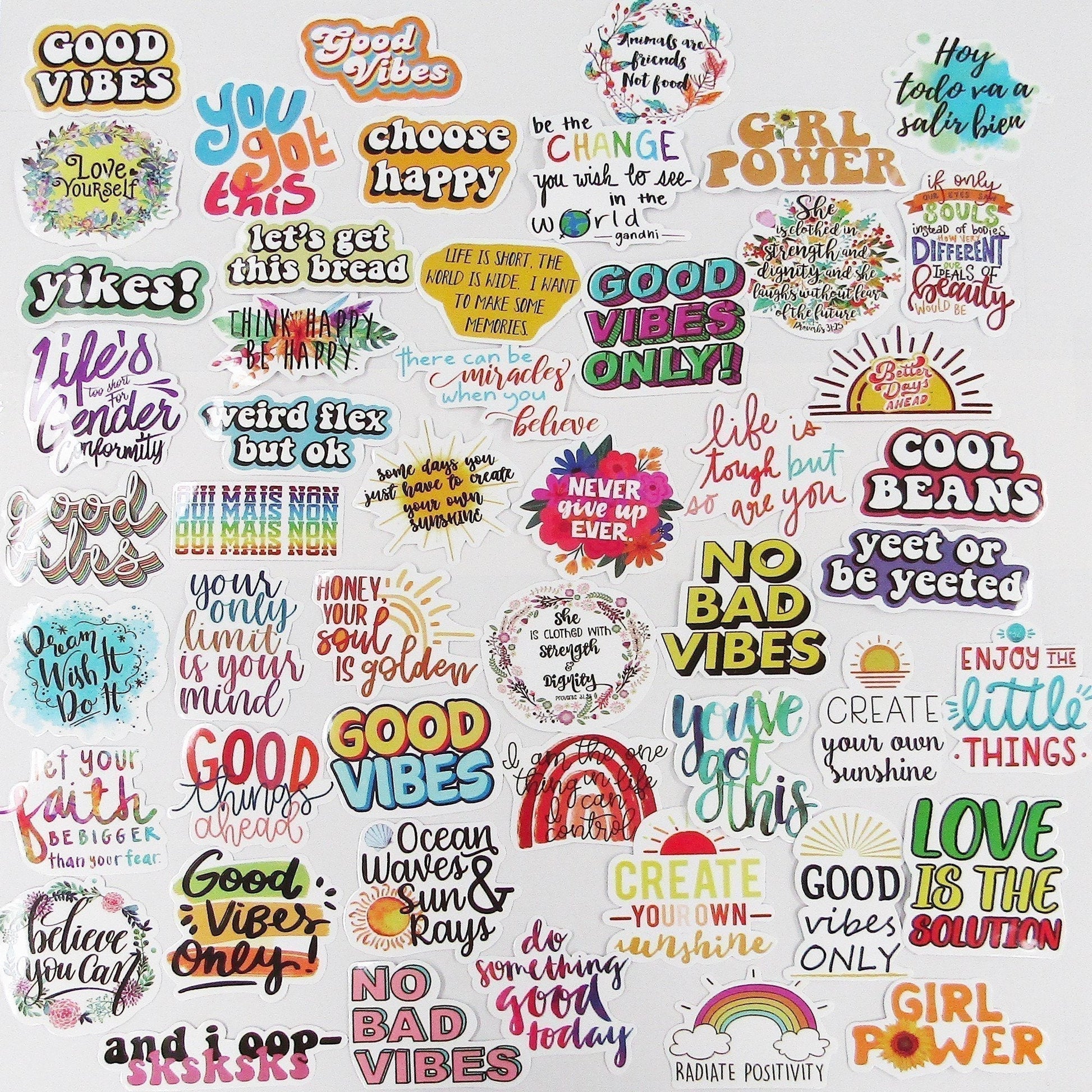 50pcs PVC Good Vibes Sticker Bundle Schoolbooks Journal Laptop Phone Skateboard