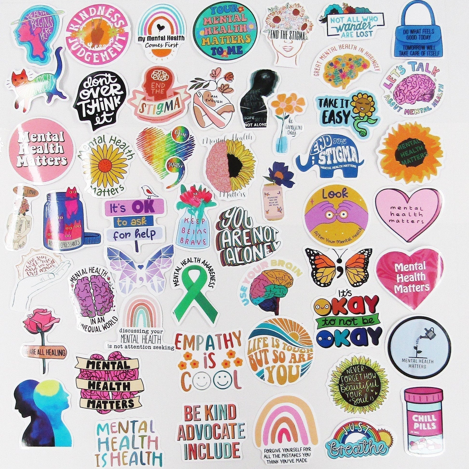 50pcs PVC Mental Health Sticker Bundle Cards Junk Journal Laptop Phone & More