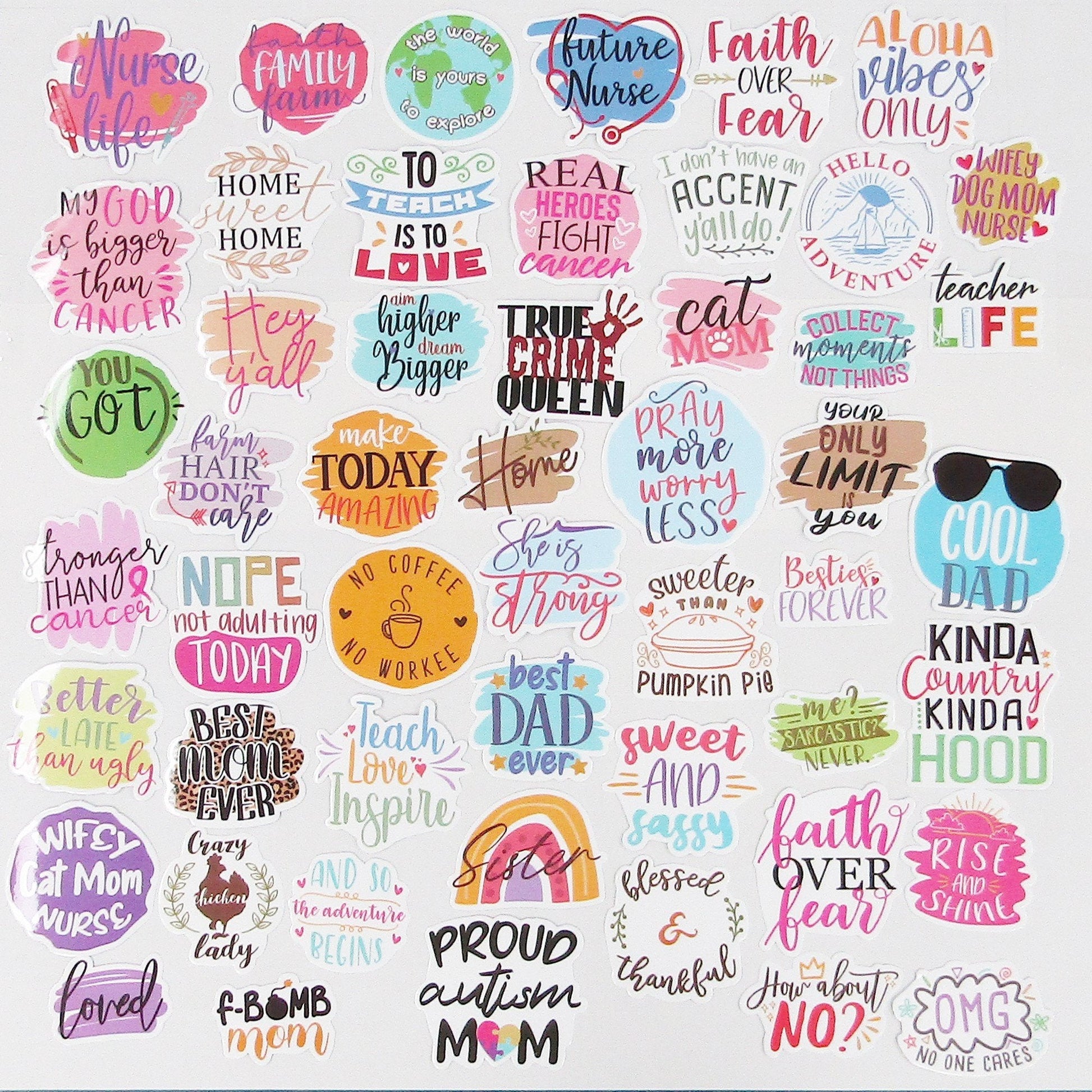 50pcs PVC Message Sticker Bundle Schoolbooks Cards Junk Journal Laptop Phones