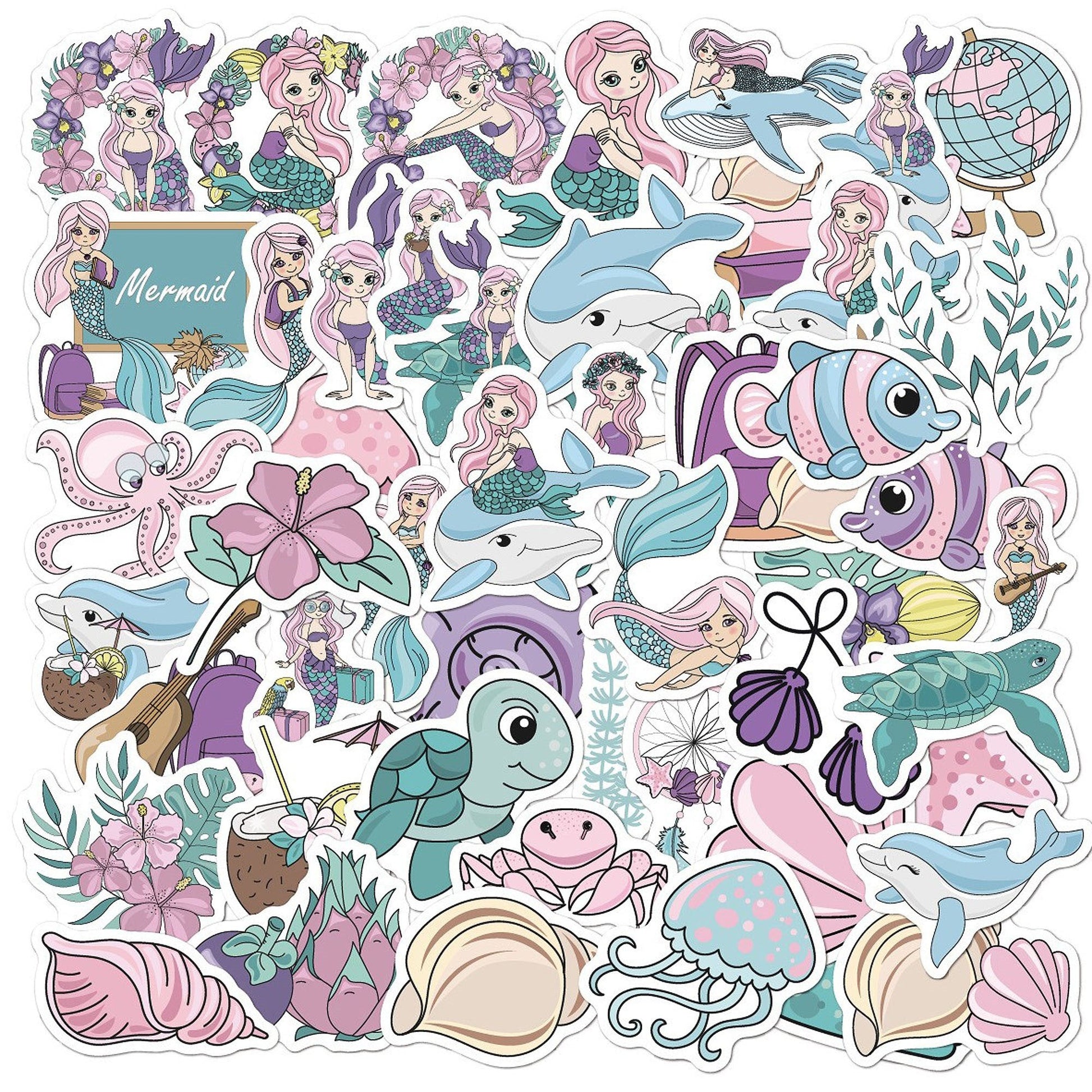 50pcs Pastel Mermaid Sticker Bundle Schoolbooks Cards Junk Journal