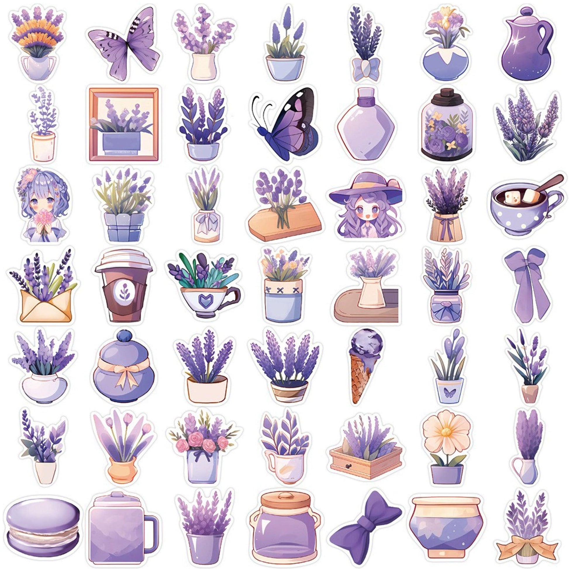50pcs Love Lavender Sticker Bundle Schoolbooks Cards Junk Journal
