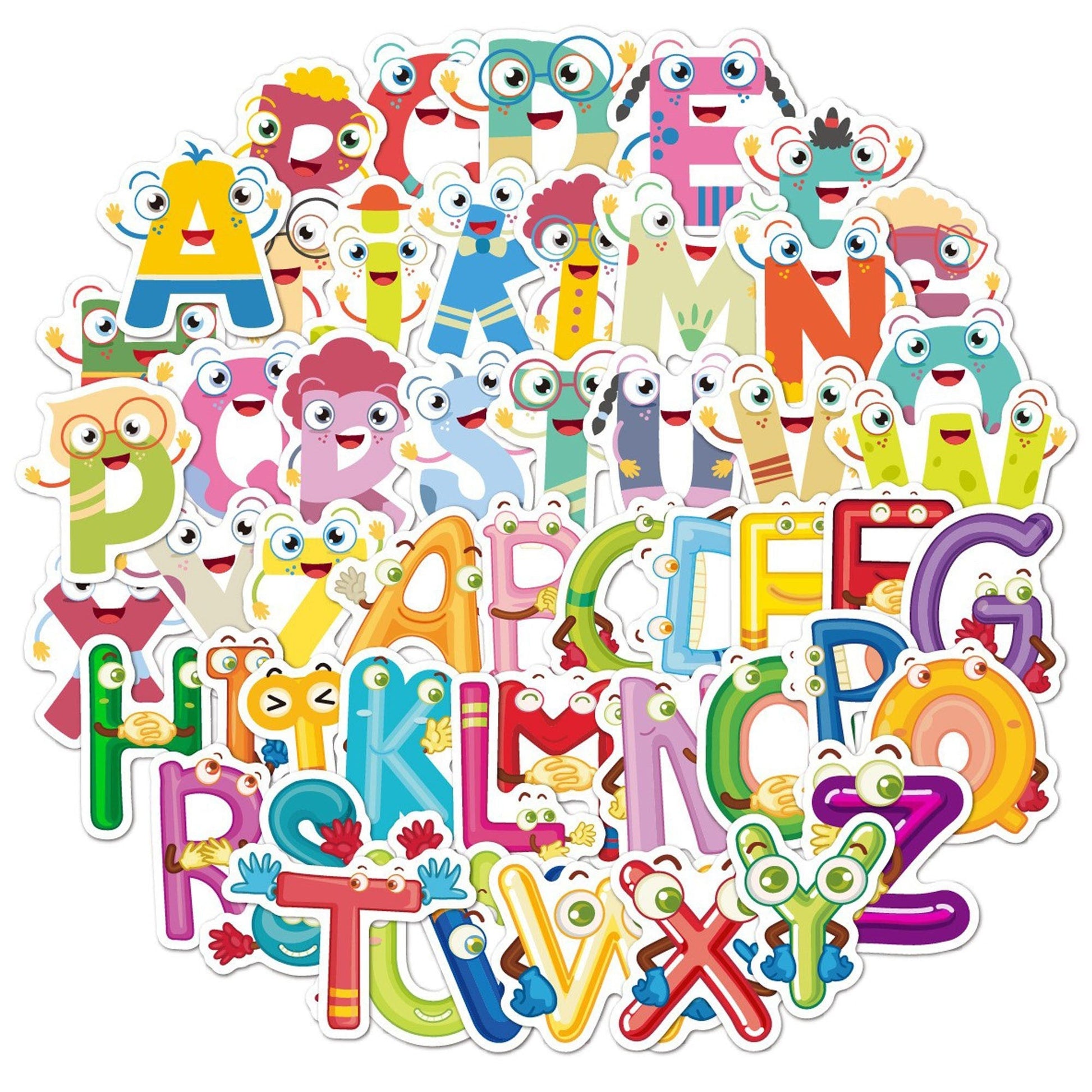 52pcs Cartoon Alphabet Sticker Bundle Schoolbooks Cards Junk Journal