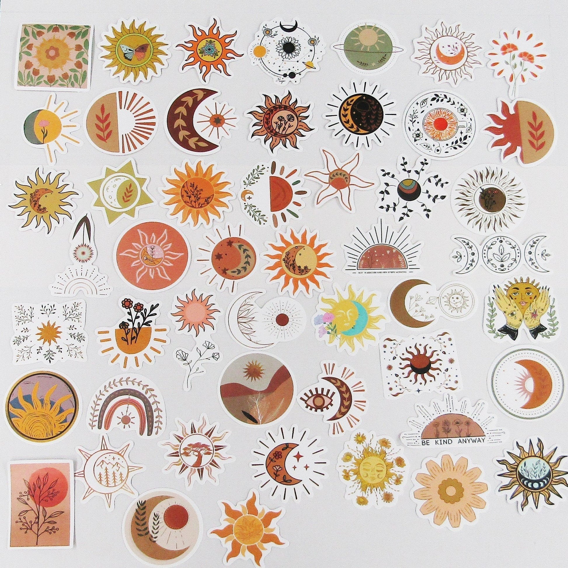 50pcs PVC Sun Moon Sticker Bundle Schoolbooks Cards Junk Journal Laptop Phones
