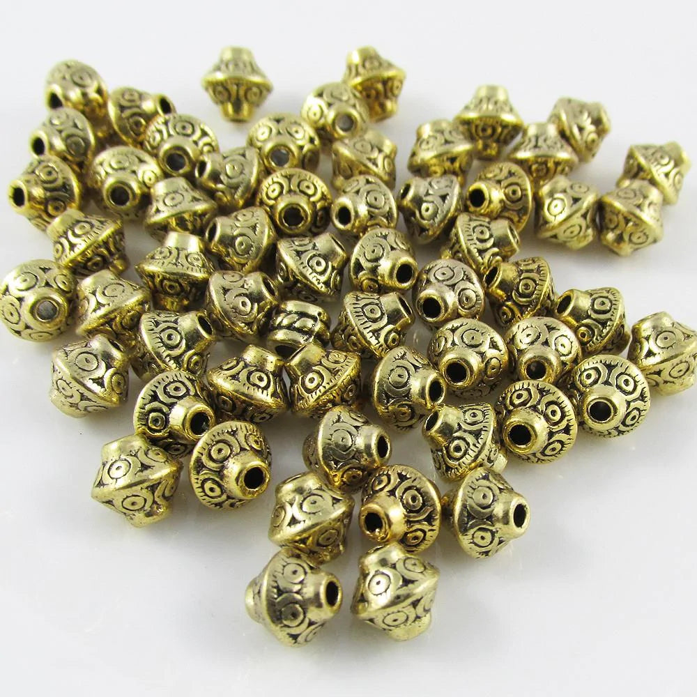 50pcs Scroll Bicone Spacer Beads 7x6mm Hole 1mm Antique Gold