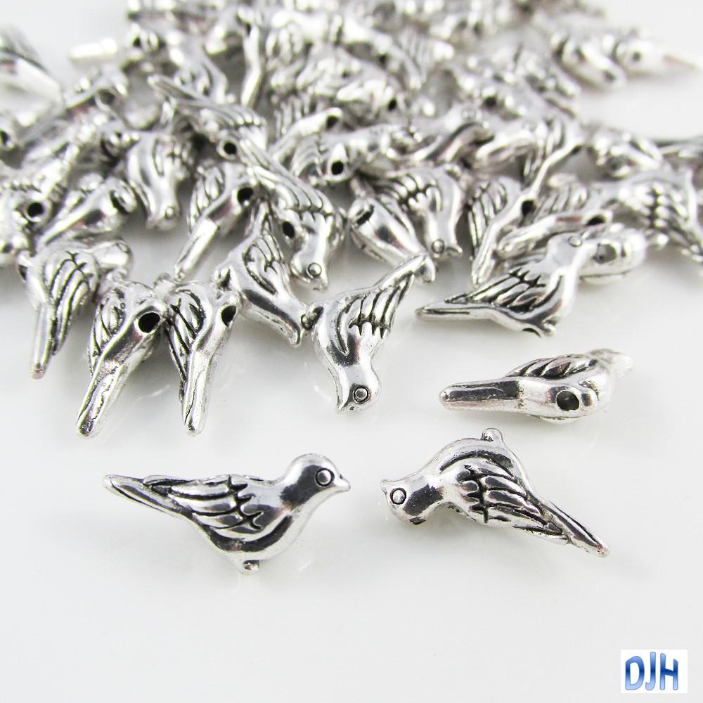50pcs Silver Bird Spacer Beads Tibetan Style 7x14x4.5mm Hole 1mm